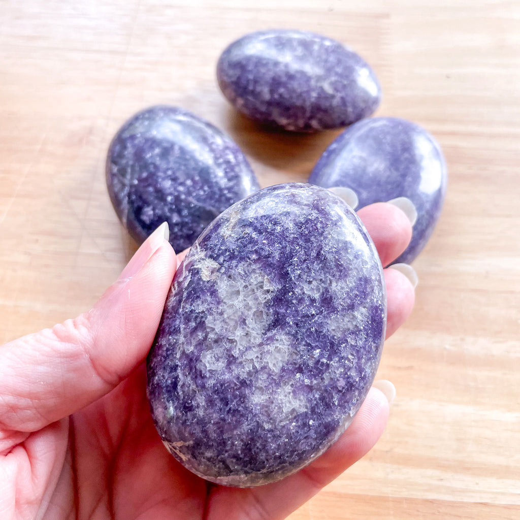 Purchase Lepidolite crystal palm stone online now from Six things shop Australia.