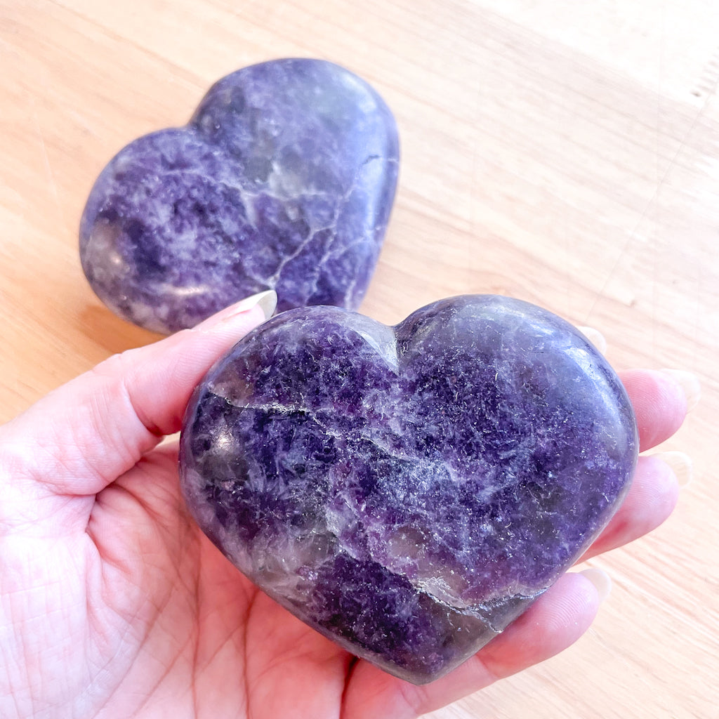 Use this gorgeous purple lepidolite crystal heart to bring peace in time of crisis.
