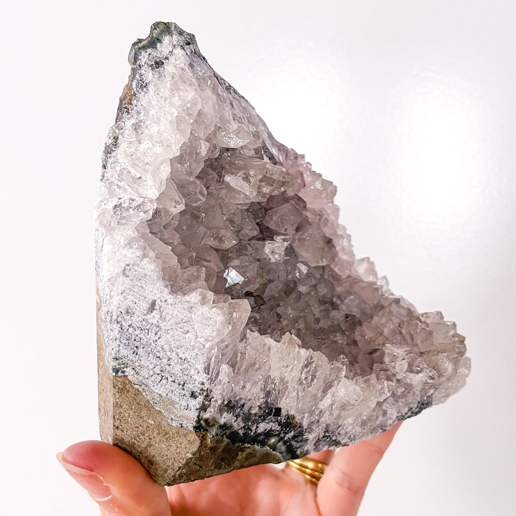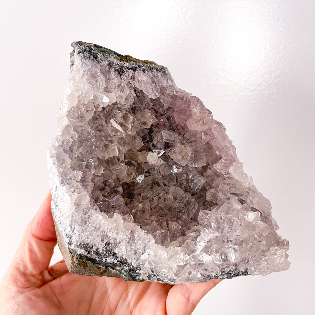 This standing amethyst cluster is a gorgeous light lilac colour and the perfect size for your desk, bedside table, or lounge coffee table.