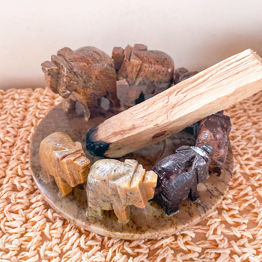 Purchase Lucky elephant crystal soapstone incense / candle holder online now from Six things shop Australia.