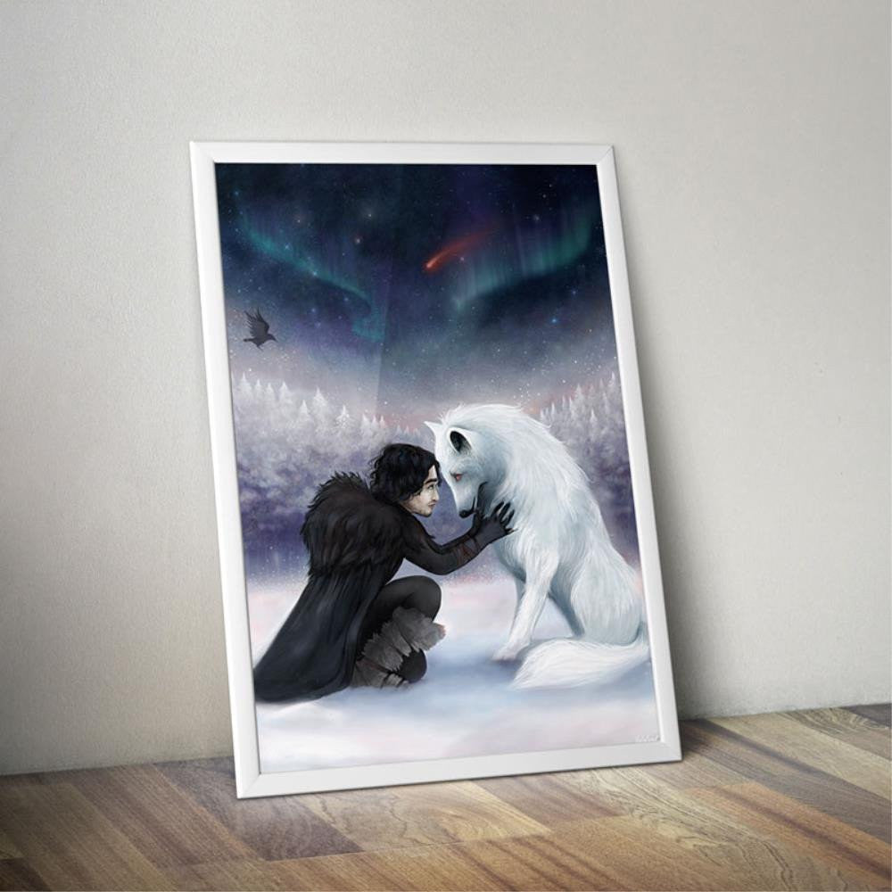 Purchase GOT TV Jon snow & wolf poster print online now from Six things shop Australia.