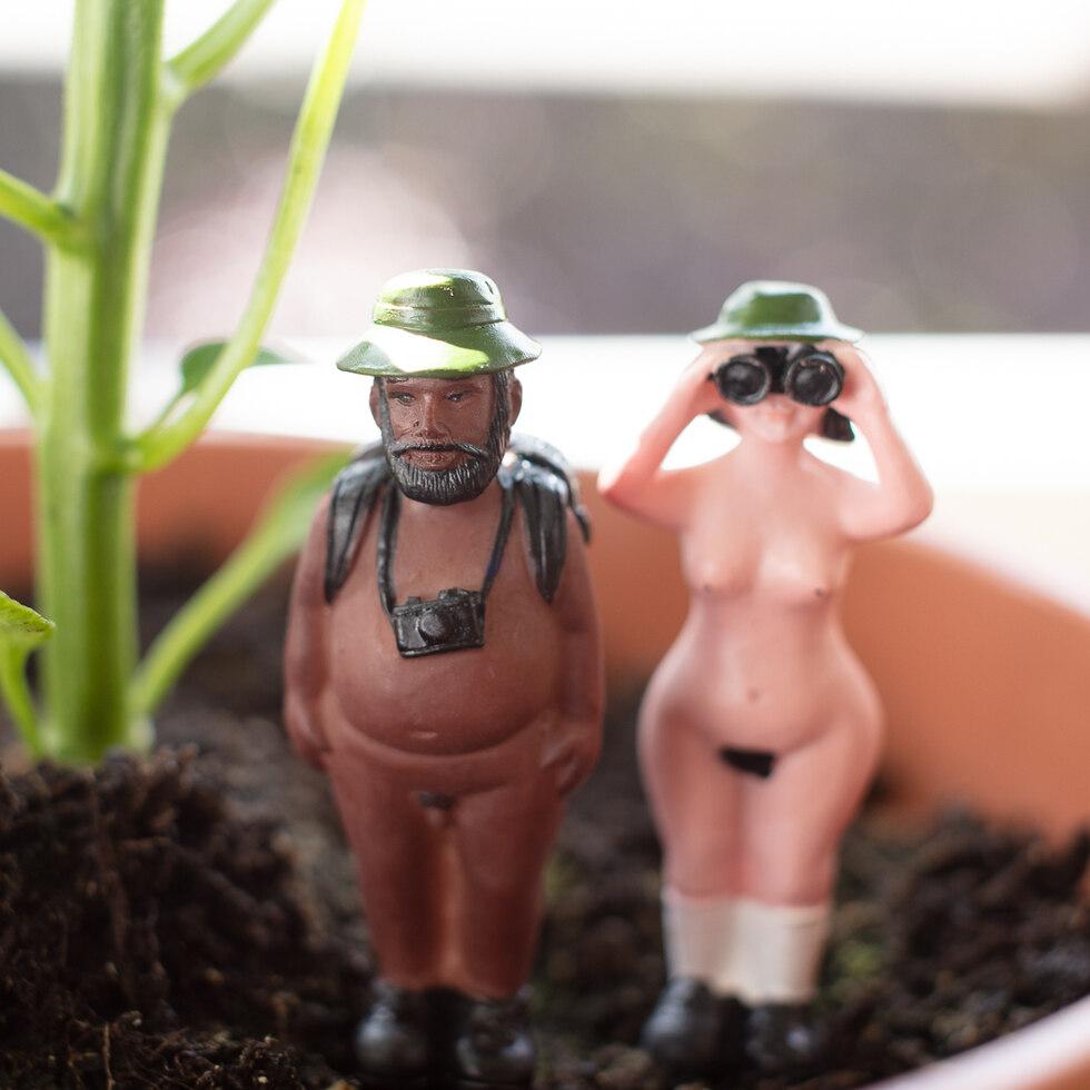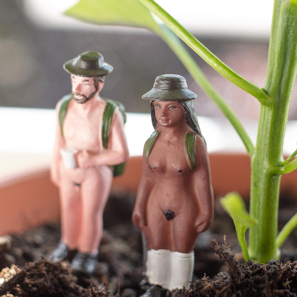 Naked gnomes / naked ramblers / nudist plant lover mini statues