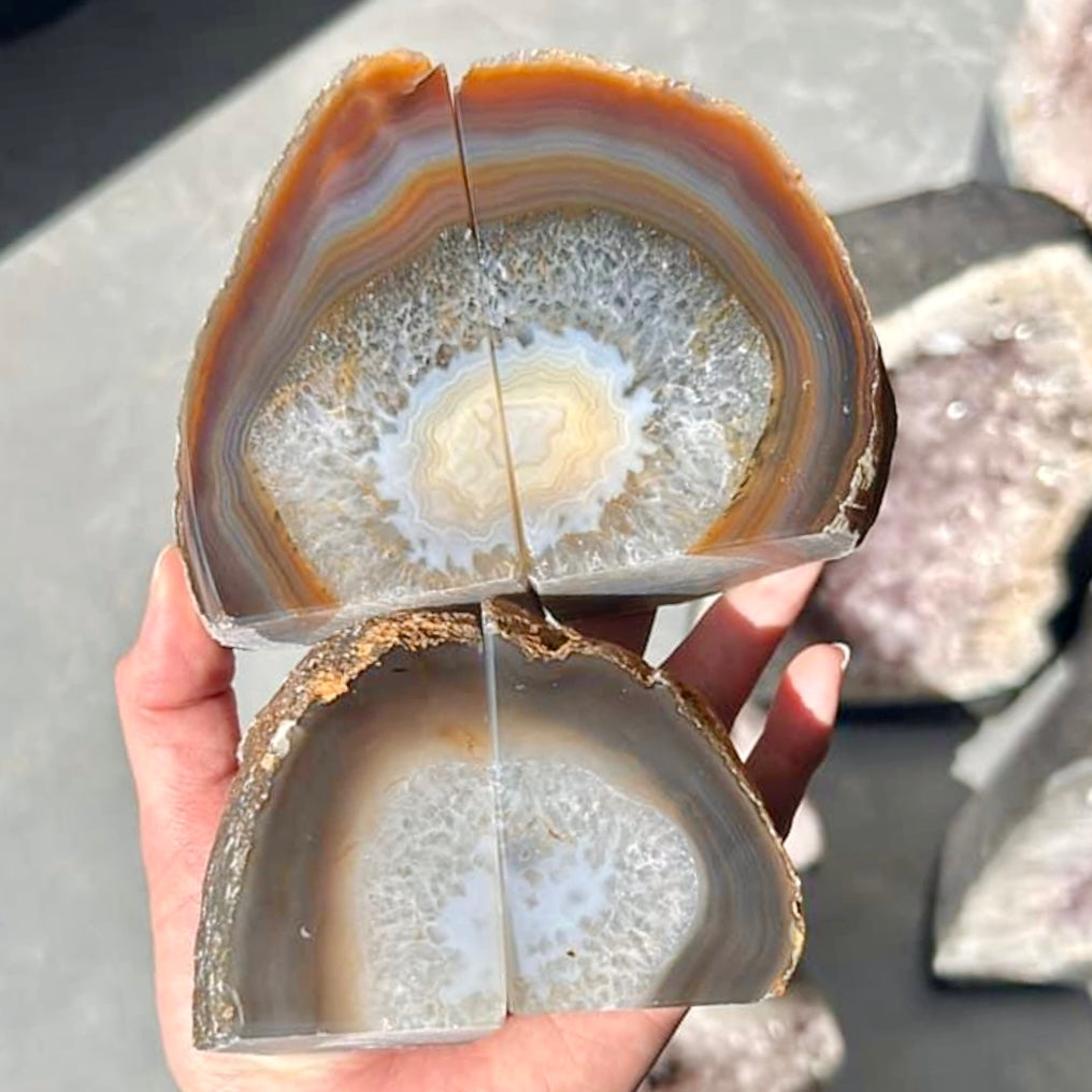 These natural brown crystal agate geode bookends are the most beautiful natural gift.