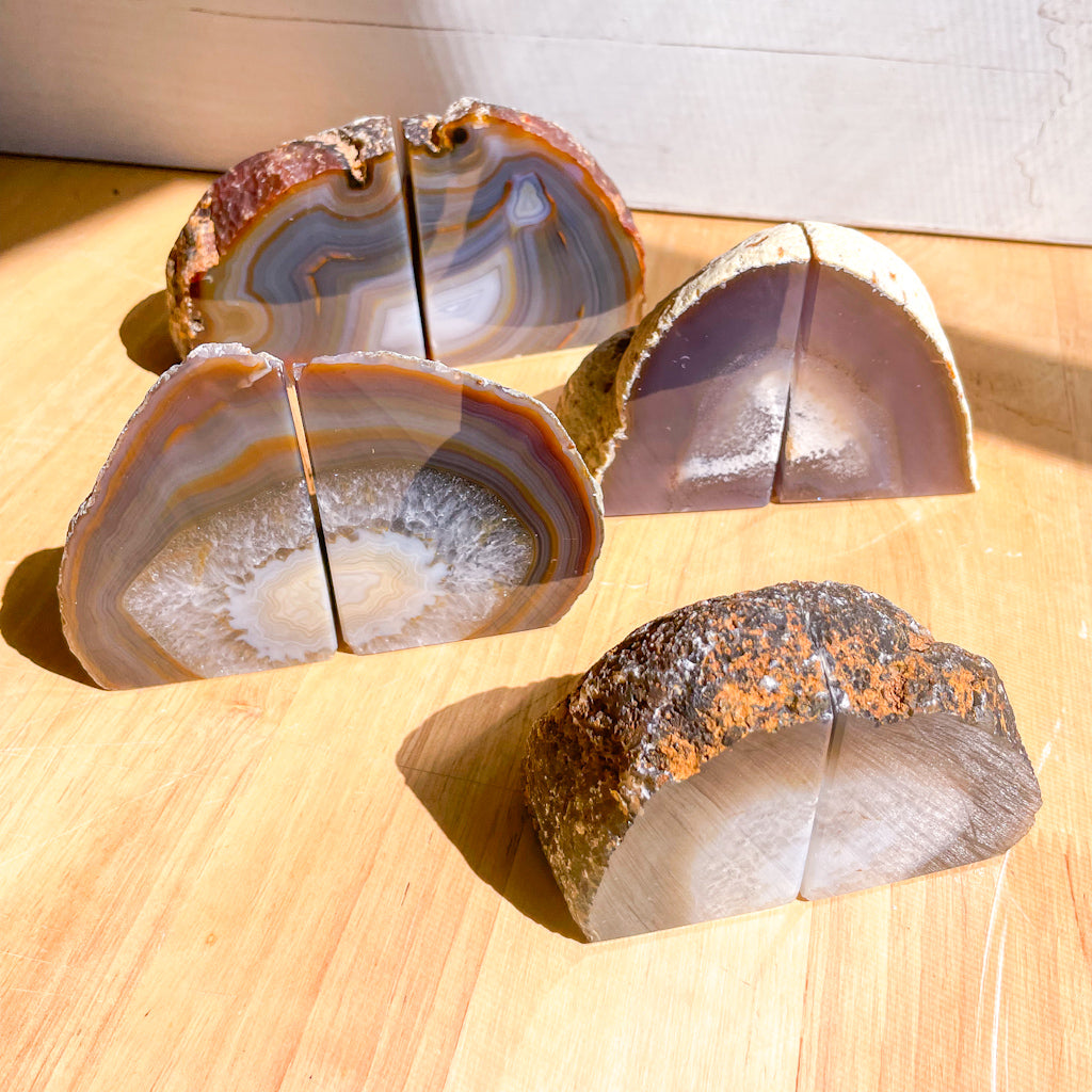 Purchase Natural agate quartz crystal geode stone bookend pair online now from Six things shop Australia.