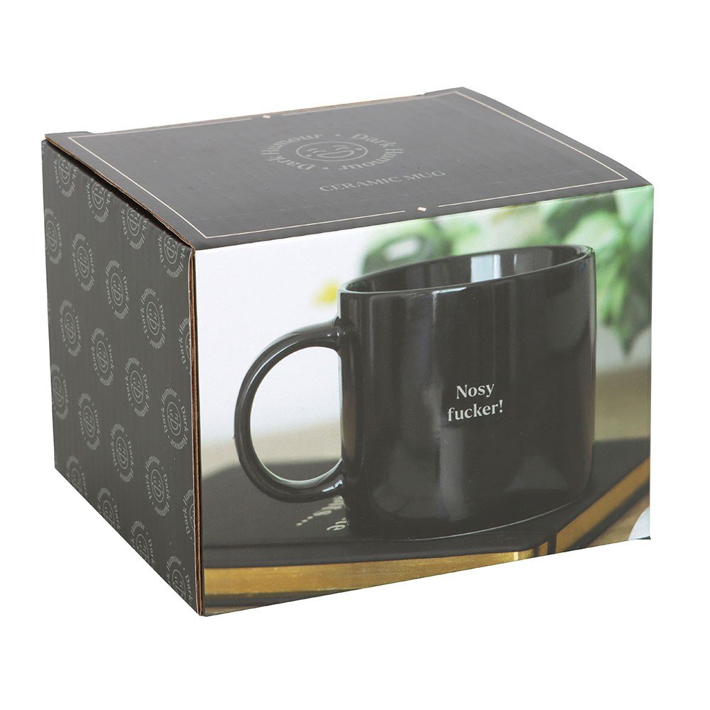 No need to be subtle when drinking out of this cheeky mug. With "Nosy fucker" text, you're sure to get the message across.