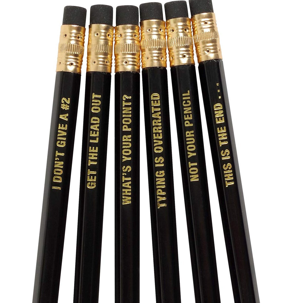 Set of 6 gold and black pencils that say it like it is...