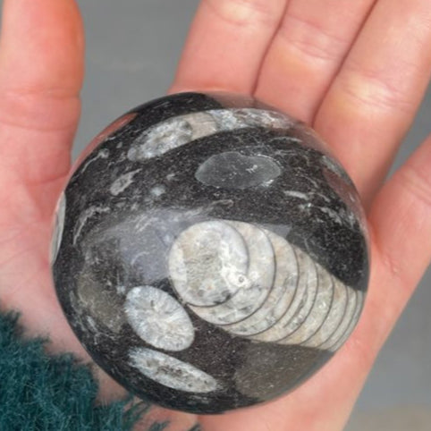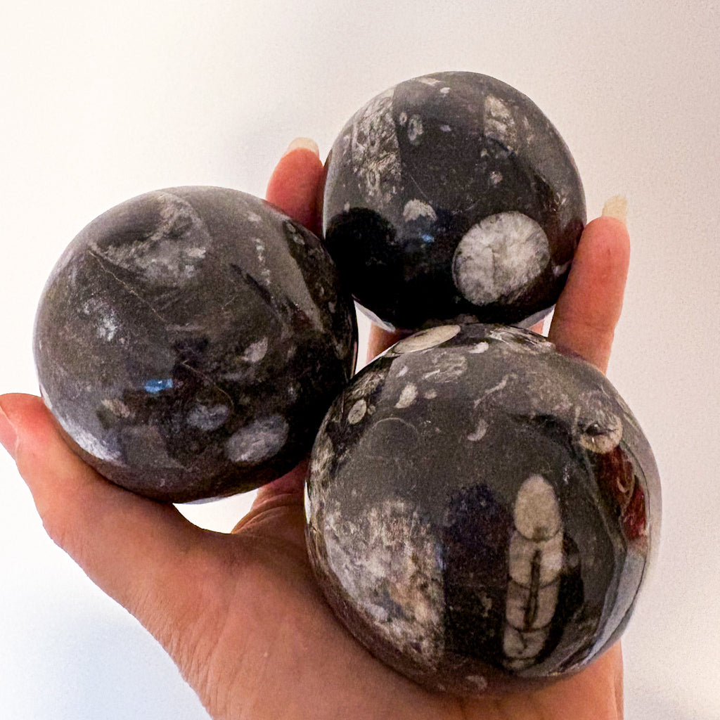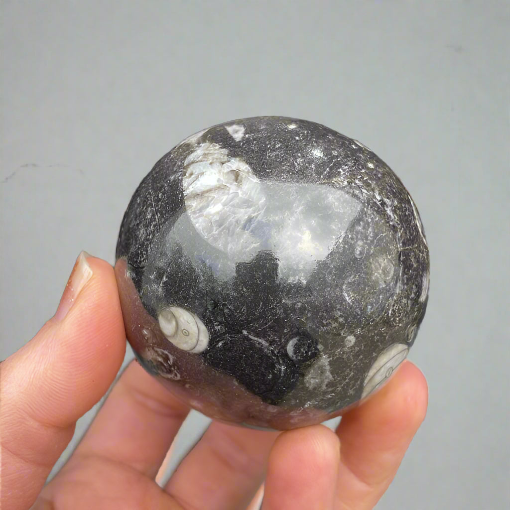 These fossilised shell spheres are a great gift for his desk. An excellent crystal for growth.