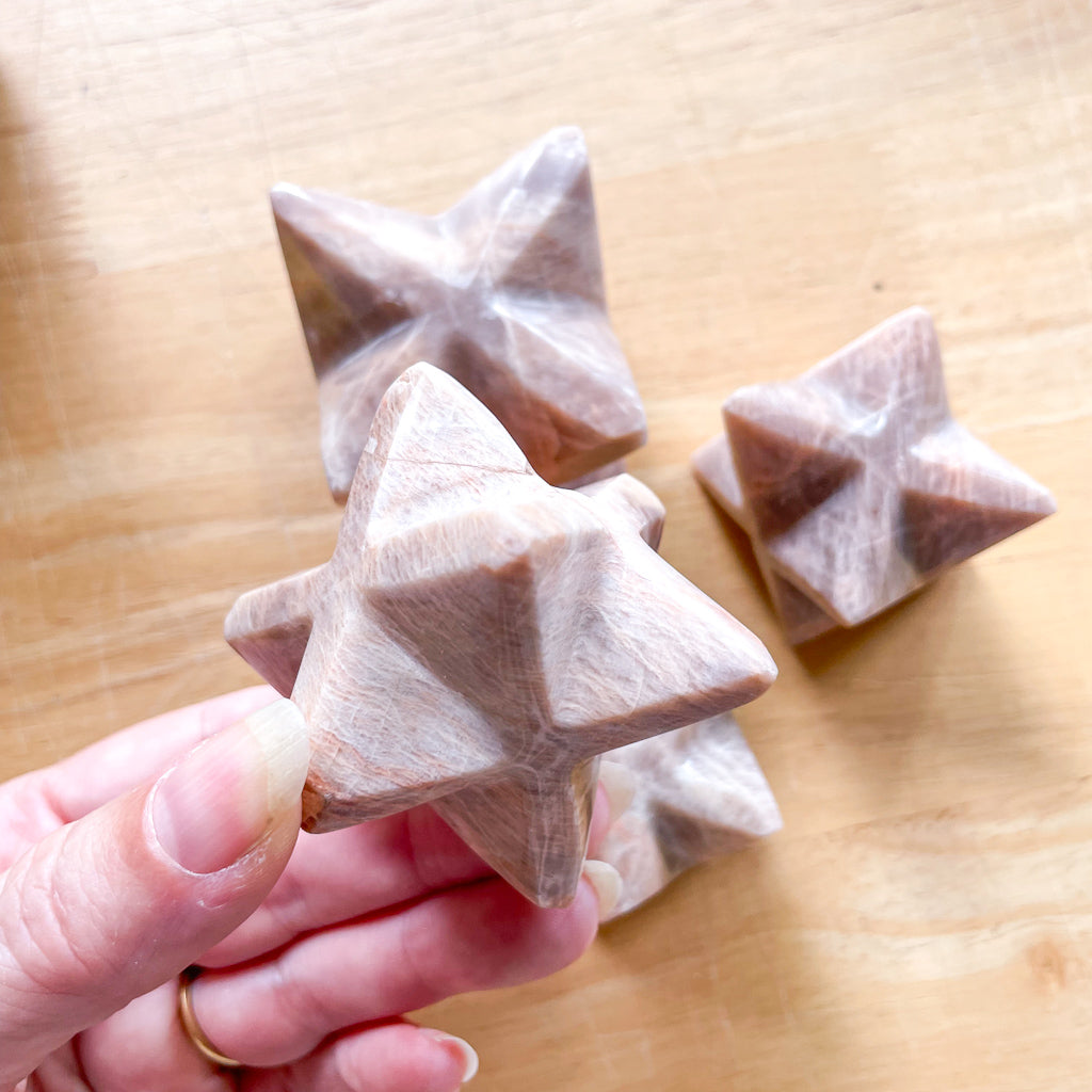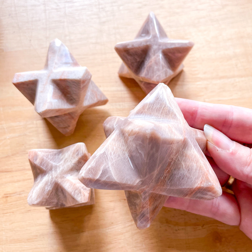 Purchase Peach Moonstone crystal merkabah stone online now from Six things shop Australia.