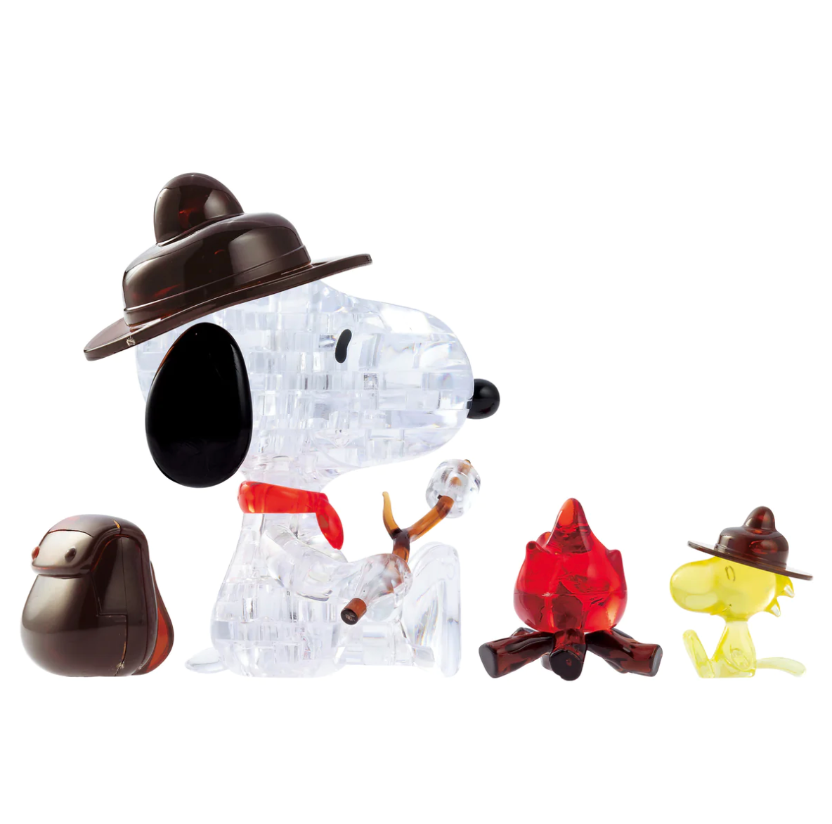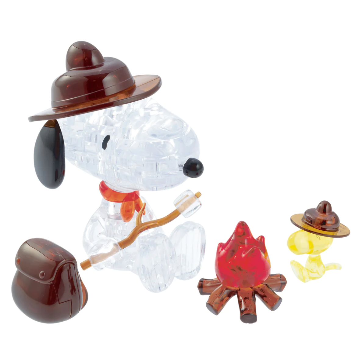 Two of Charles Schultz's beloved Peanuts characters come to life in this 43-piece 3D Crystal Puzzle. The completed puzzle features Snoopy the dog, Woodstock the bird, a mini campfire, and backpack, with incredible detail down to the cute marshmallow on a stick!