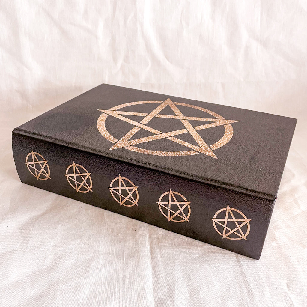 Book Box with Black and Gold Pentagram Design a great place to keep your Crystals, tarot cards or trinkets.