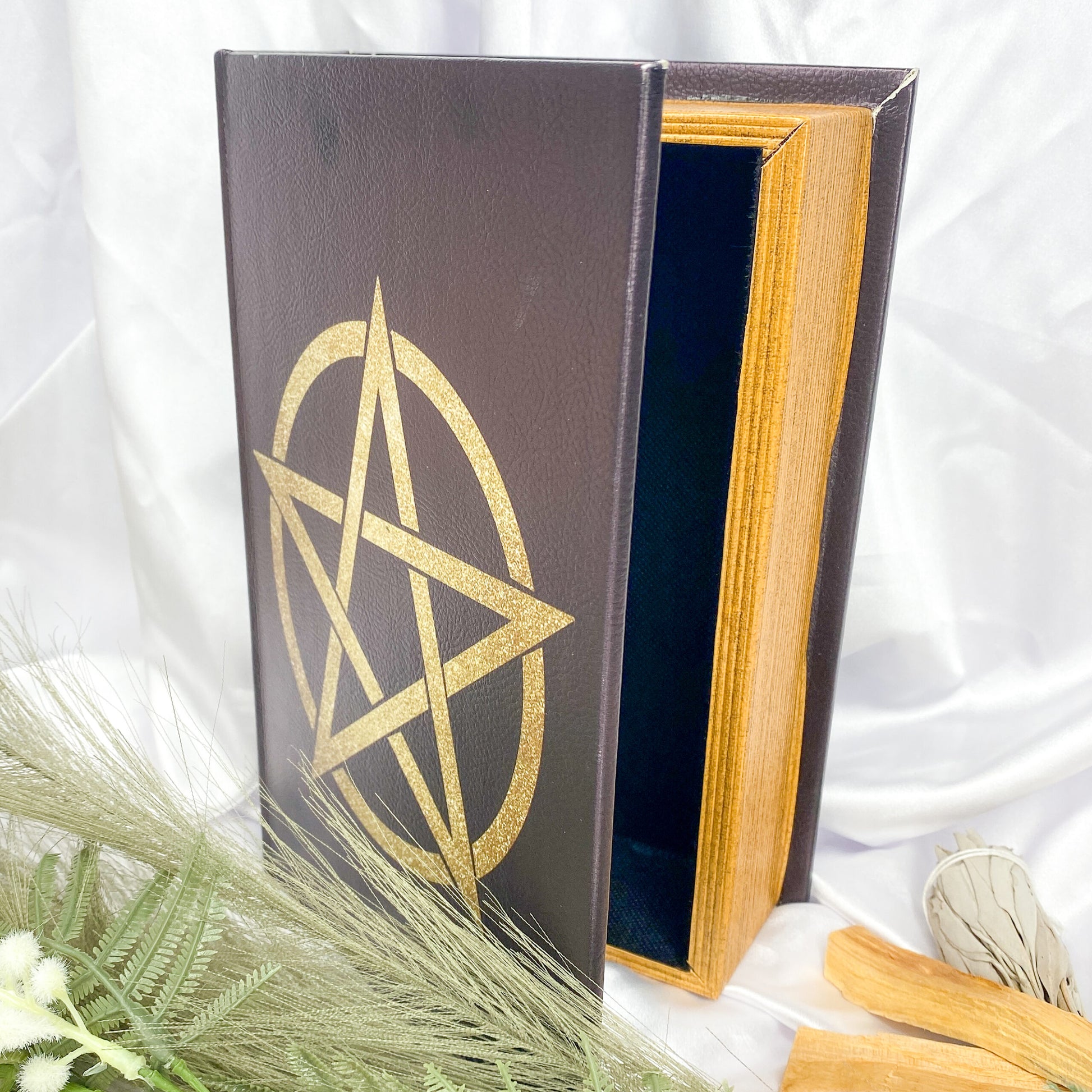 Book of shadows box, Pentagram box, Gothic box, Book of spells, Hollow magic book, Witchcraft decor, Pagan decor, Book of magic, Wedding gift, Grimoire book box, Occult decor box, Wicca decor, Halloween gift.