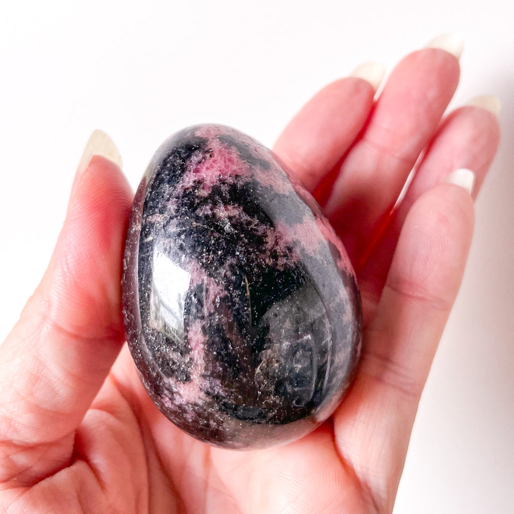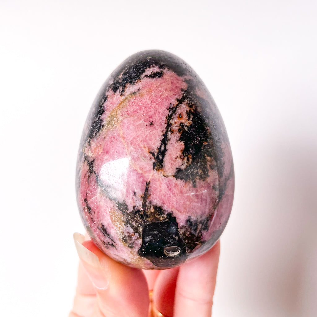 Purchase Pink rhodonite crystal egg online now from Six things shop Australia.