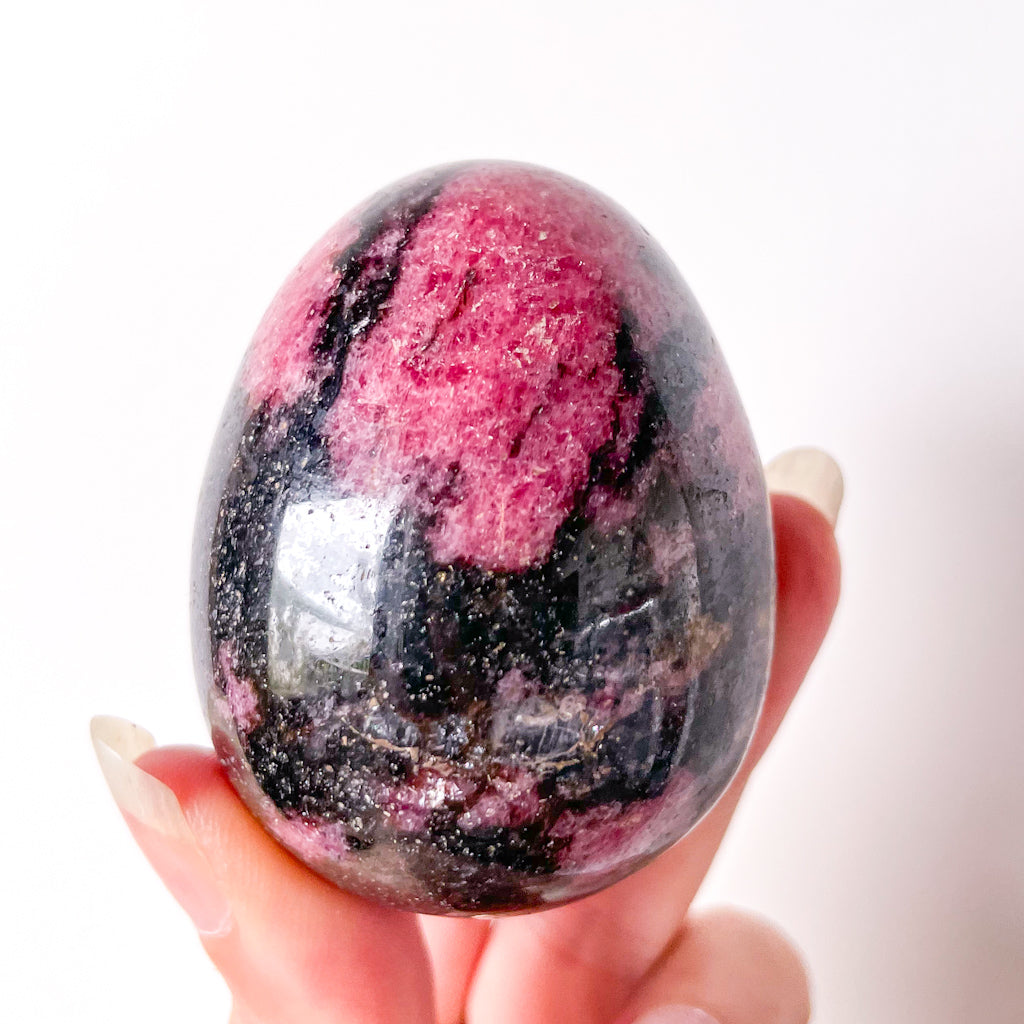 Pink rhodonite crystal egg