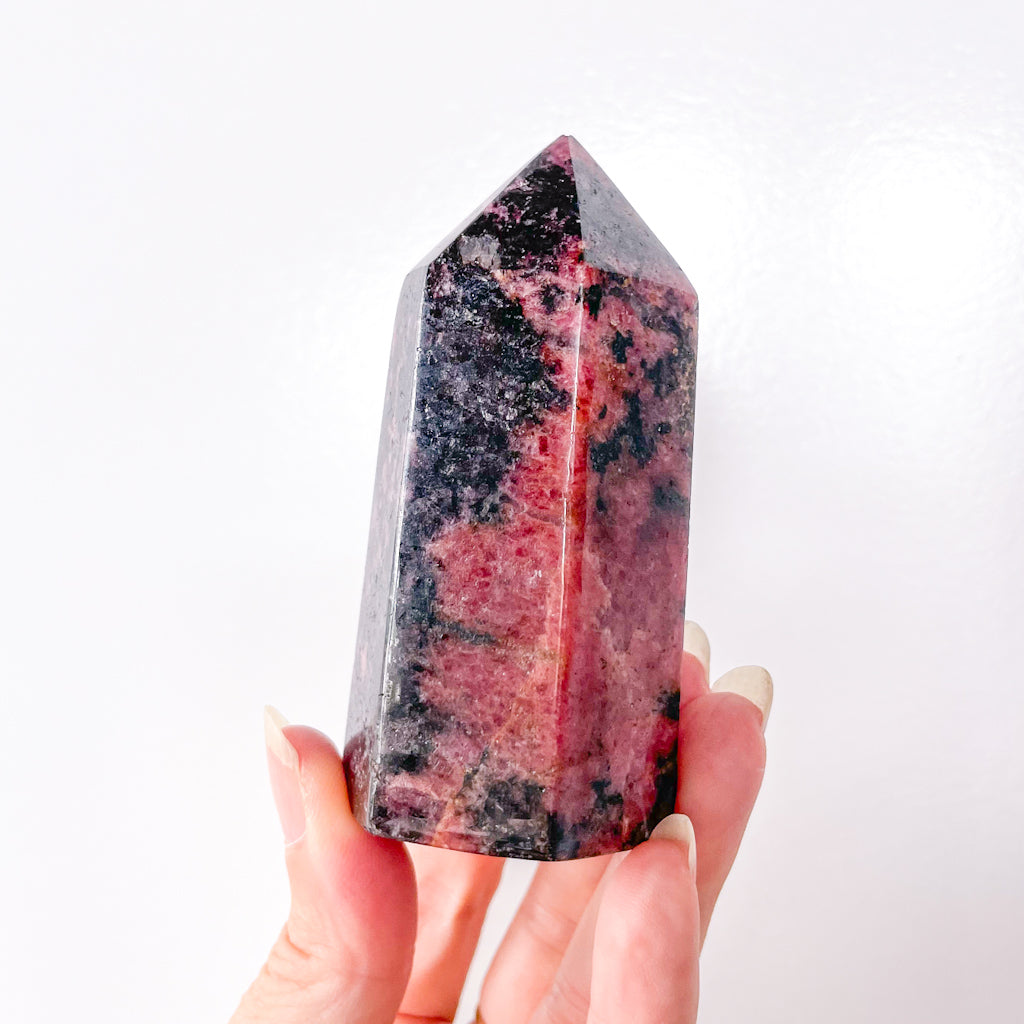 Purchase Pink rhodonite crystal tower - compassion online now from Six things shop Australia.