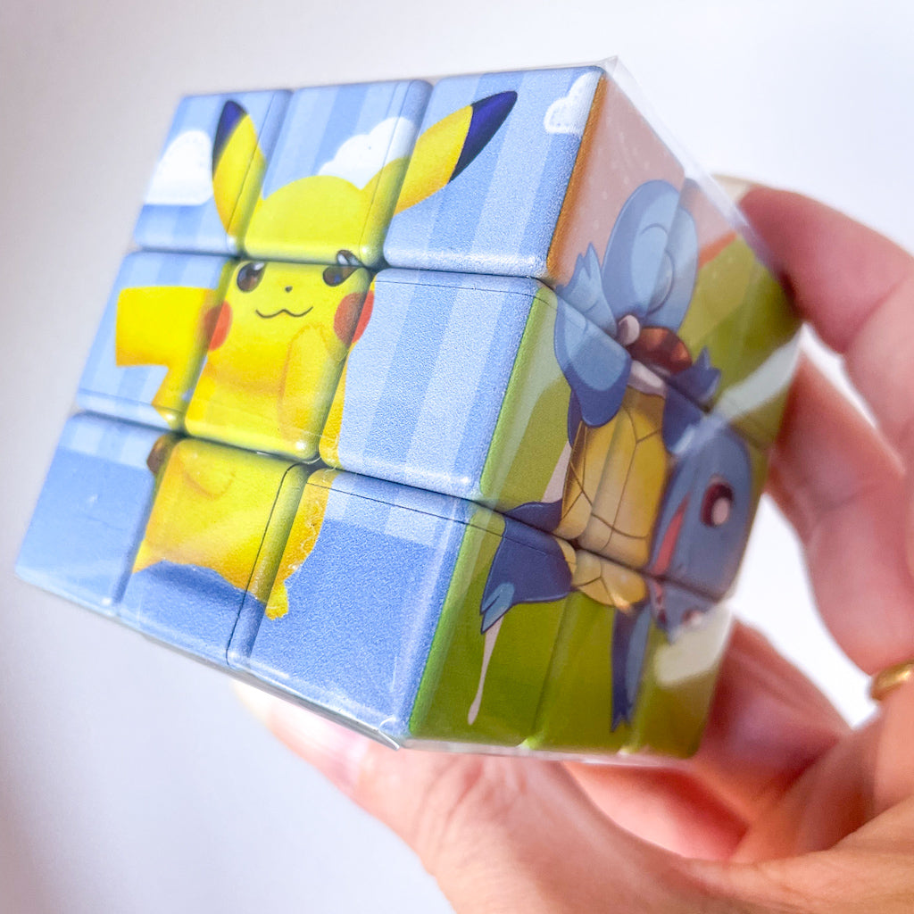 Popular characters from Pokemon, adorn the sides of this challenging puzzle cube.