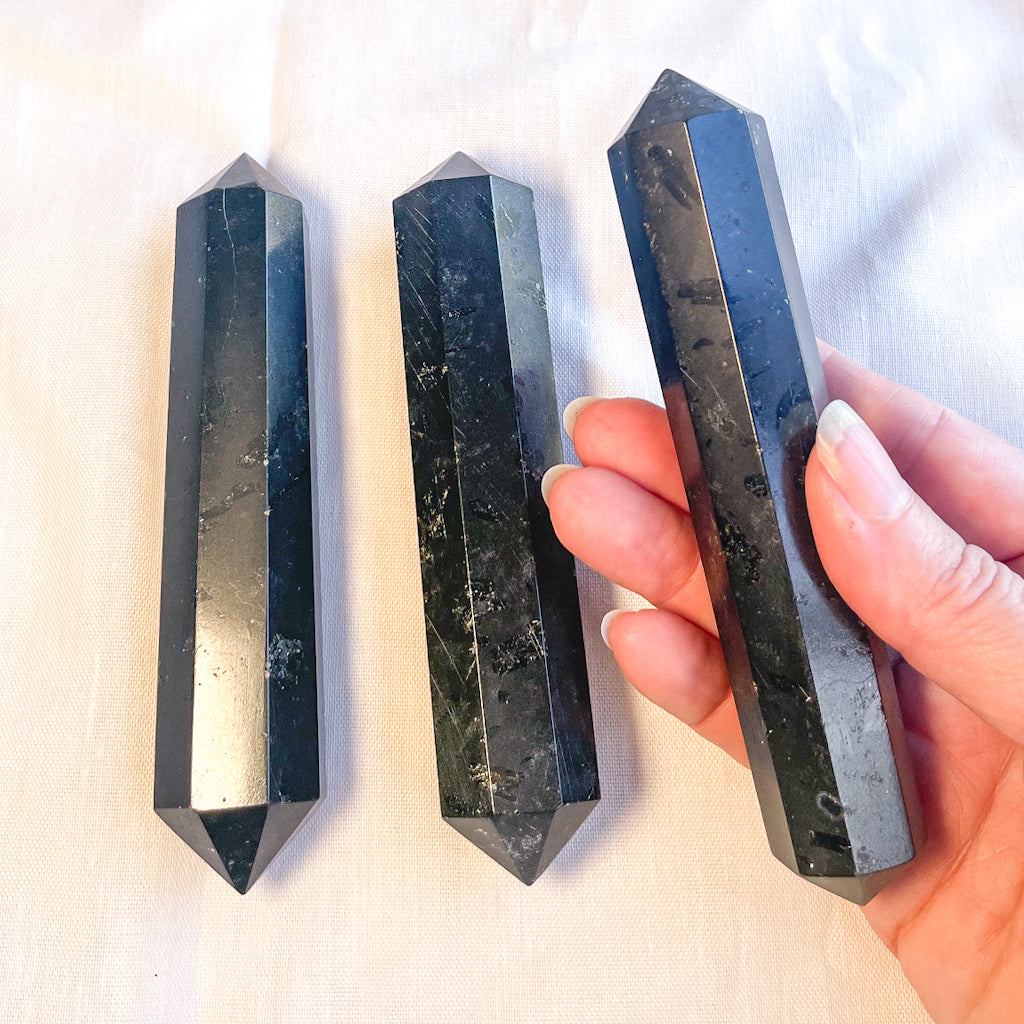 Purchase Protection wand Black tourmaline crystal DT double terminator point online now from Six things shop Australia.