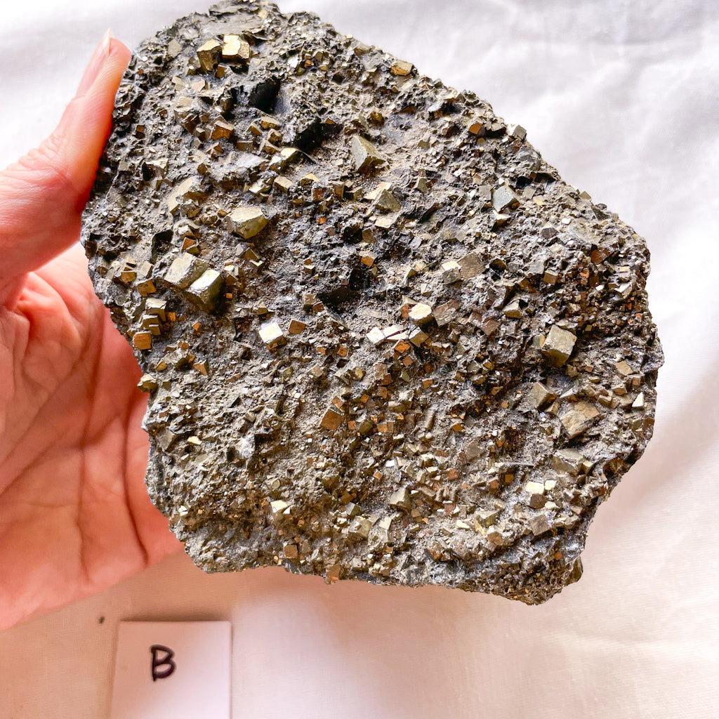 This particular lot of spheres is actually a mix of Pyrite and Magnetite, a combination known as Apache Gold or Healer's Gold. This type of Pyrite emanates powerful, positive energy and is used by healers and readers to prevent feeling drained. All Pyrite is grounding and protective, but Apache Gold Pyrite is thought to be especially attuned to the Earths' grounding and shielding properties.
