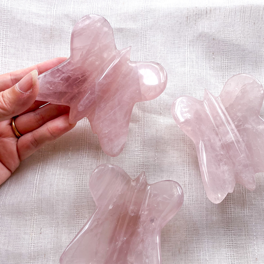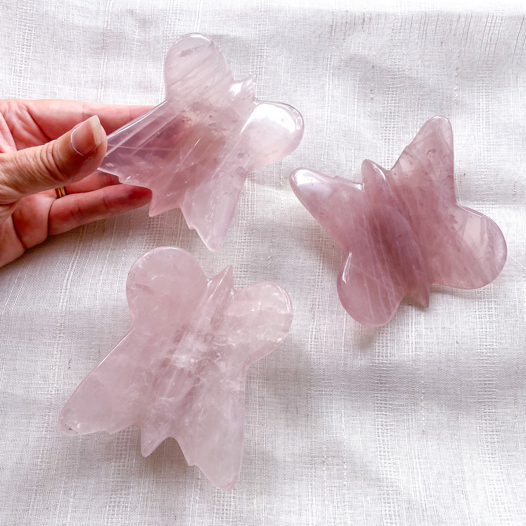 Purchase Rose quartz crystal carved butterfly statue online now from Six things shop Australia.