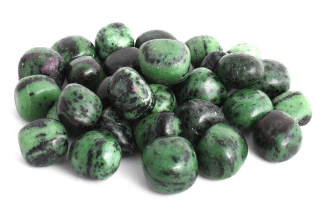 Crystal tumbles of green and deep pink ruby and zoisite crystal are perfect for your witchy rituals, adding good vibes to your pocket, bra, purse or car or popping in your crystal collection.