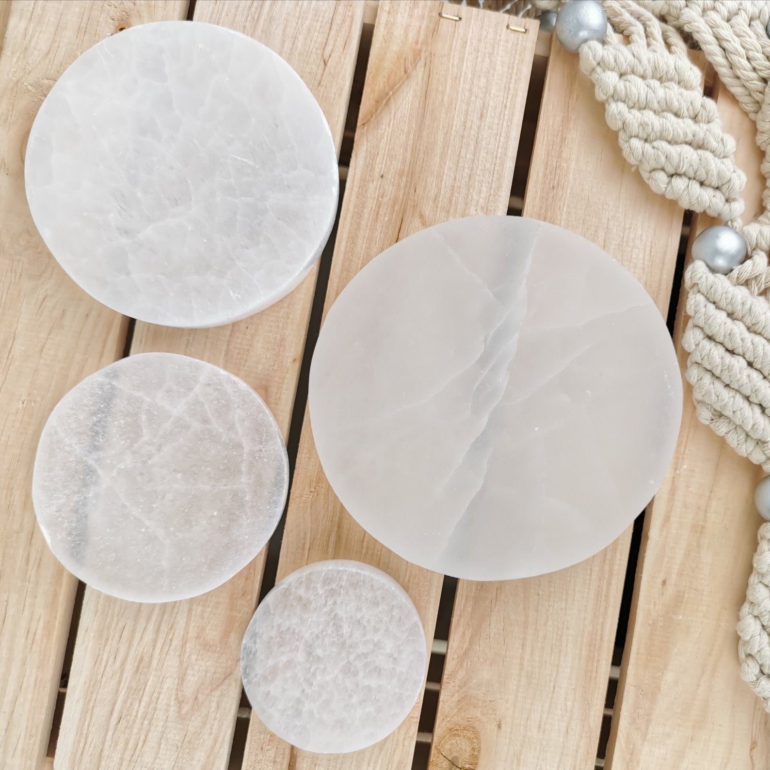 Please note as this is a natural stone each one differs slightly in colour, size and texture. Please note Selenite has natural cracks and lines within the stone, these are not faults but part of the stones beauty.