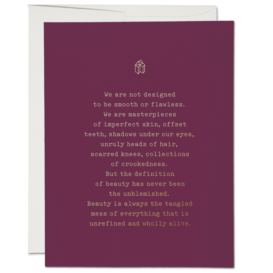 Frame this beautiful manifesto or give it to your bestie. Beauty is always the tangled mess of everything that is unrefined and wholly alive.