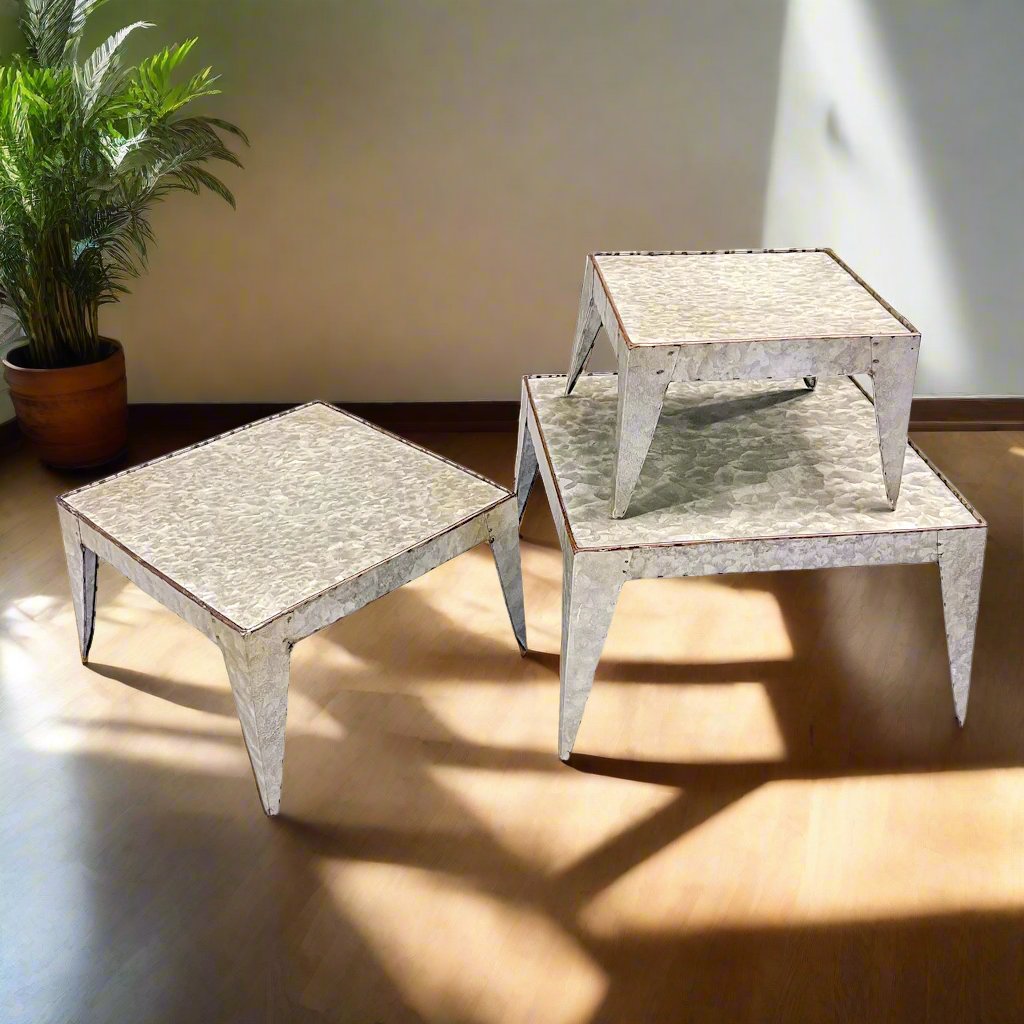 This square topped metal stool has that instant industrial beach house vibe. A small stool is the right accessory for your lounge room for a display crystal, next to the bath with a candle and book, or to raise a pot plant. Our stool stand set is perfect to raise and give height to your ornaments or table centrepieces. Perfect way to add some rustic charm to your decor. Stackable and light weight. Ideal for adding height to your display. Create an arrangement with a layered effect and give more depth and dimensionality to the way your plants are displayed.