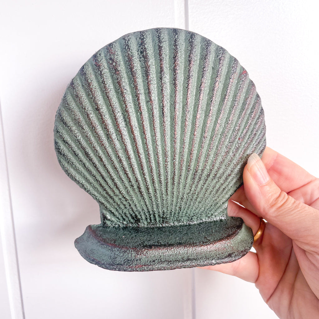 Add a lil vintage style to your home with this classic shell shaped painted cast iron bookend / door stop.