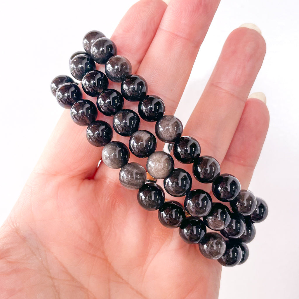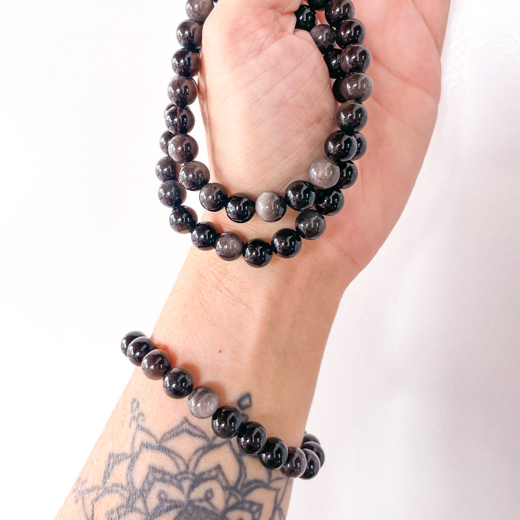 Harness the mystical power of moonlight on dark waters with our enchanting silver sheen Obsidian Bracelet. This extraordinary accessory captures the allure of night's deepest secrets, offering a wearable talisman that shields against negativity, enhances intuition, and reveals hidden truths while adorning your wrist with the mesmerizing interplay of darkness and light.