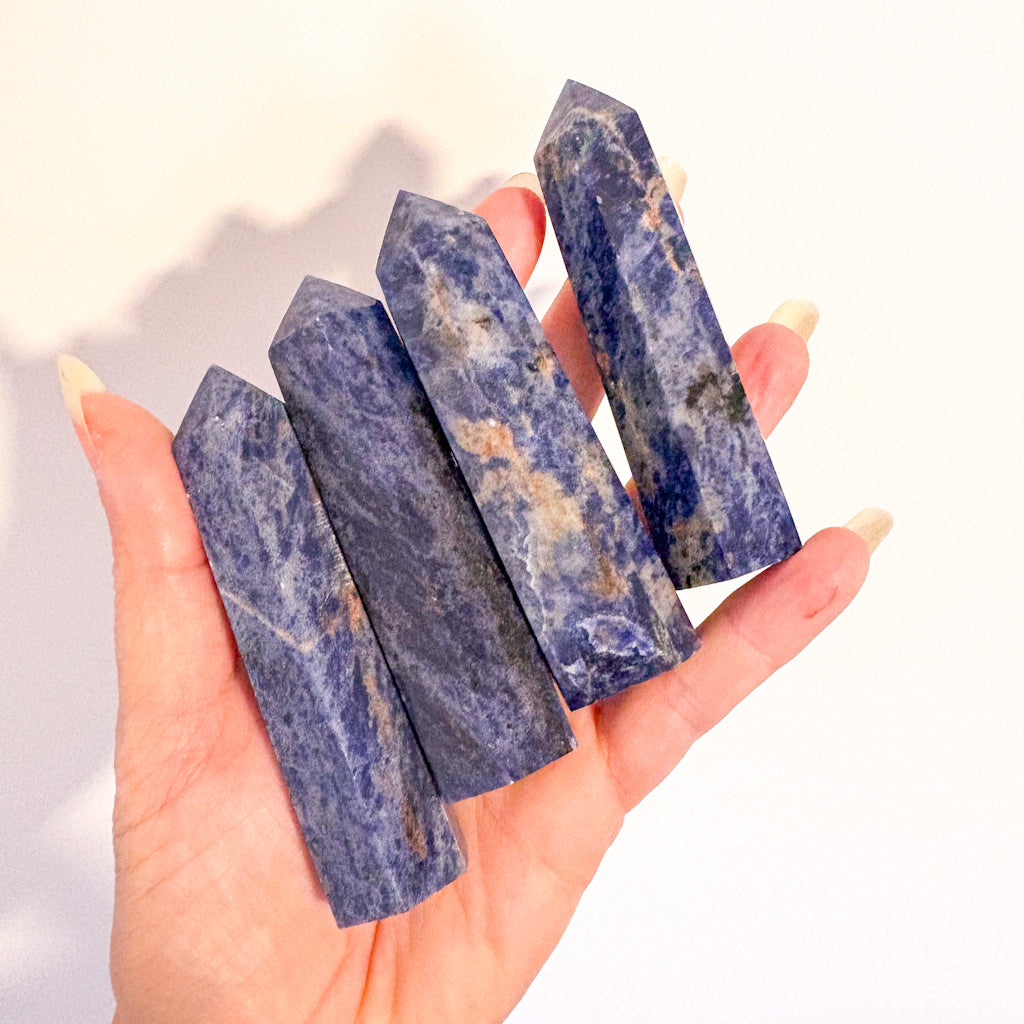 Use these gorgeous sodalite crystal point towers as decoration, in your office, or for crystal healing.