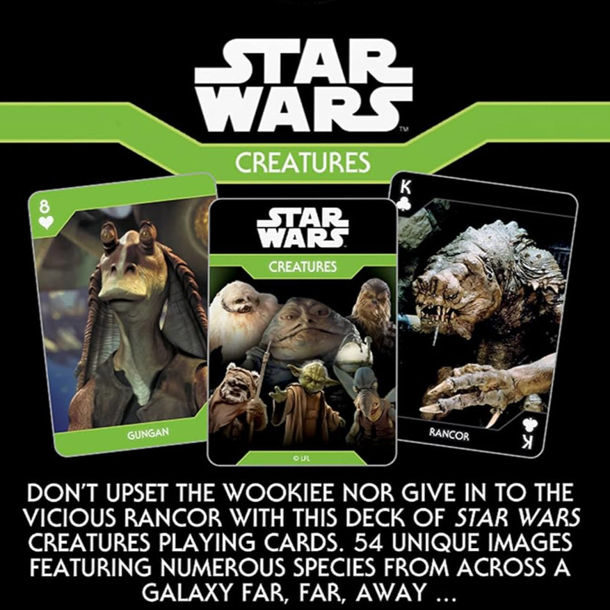 Whether you're a classic Poker player or enjoy a round of Go Fish with friends, these Star Wars themed playing cards are perfect for any card game. The high-quality materials ensure durability and longevity, so you can play countless games with these cards without worrying about wear and tear. The AQUARIUS Star Wars Creatures Playing Cards make a great addition to your collection of Star Wars memorabilia.