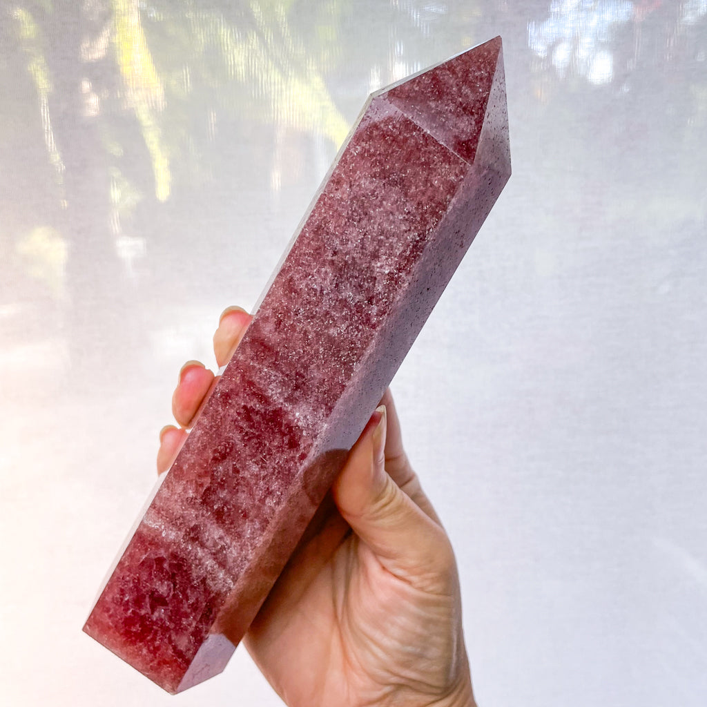 Purchase Strawberry quartz crystal generator tower 19cm tall online now from Six things shop Australia.