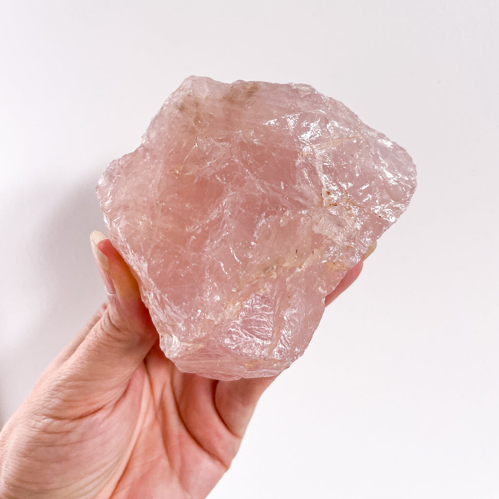 Rose Quartz large rough raw stone - the stone of unconditional love. It brings your attention to the love around you and will encourage you to treat yourself with the same love, forgiveness and care that you give others. Pop this raw beauty in your bathroom to remind you to look after yourself first.
