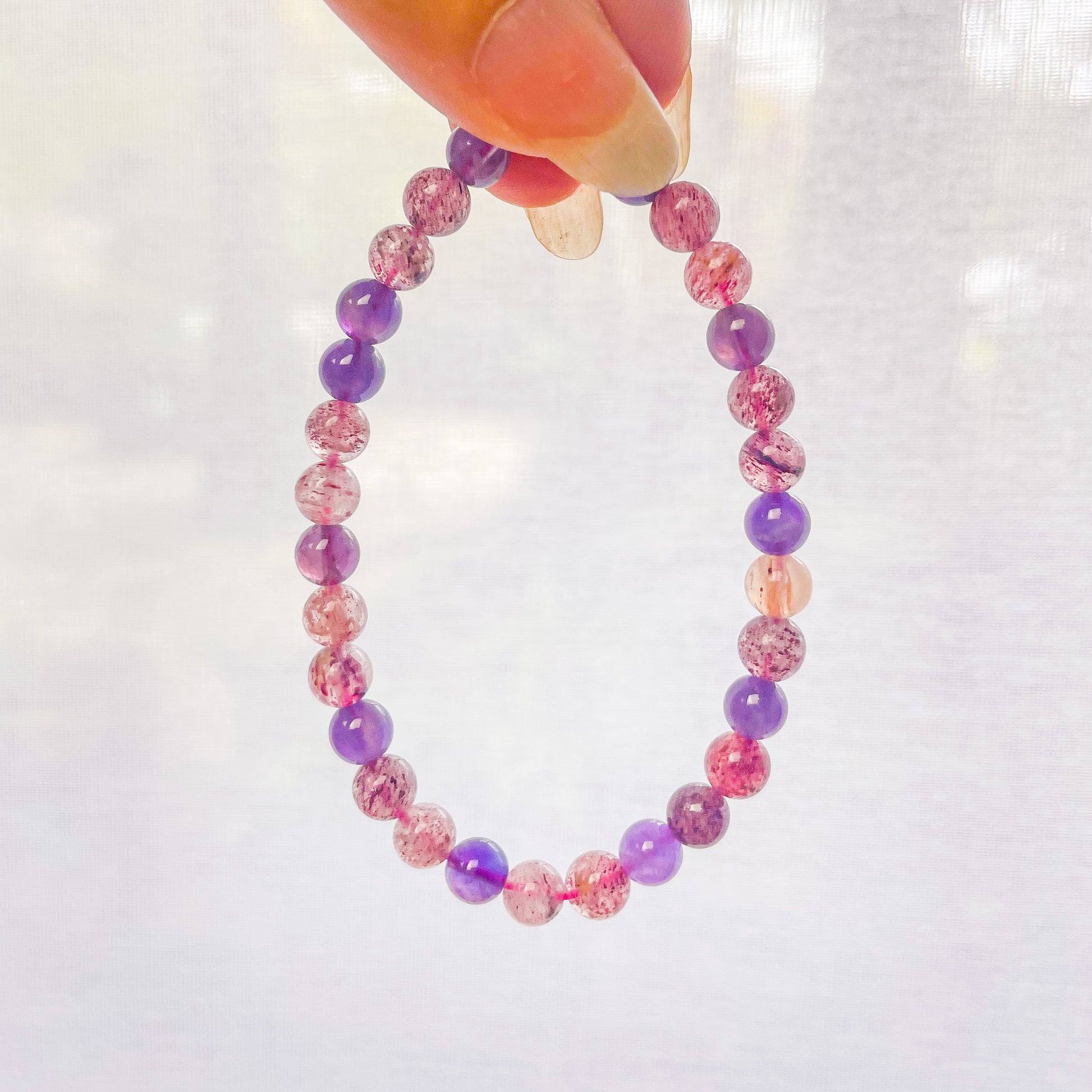 Beautiful super seven pink and purple coloured crystal bead bracelet great for her.