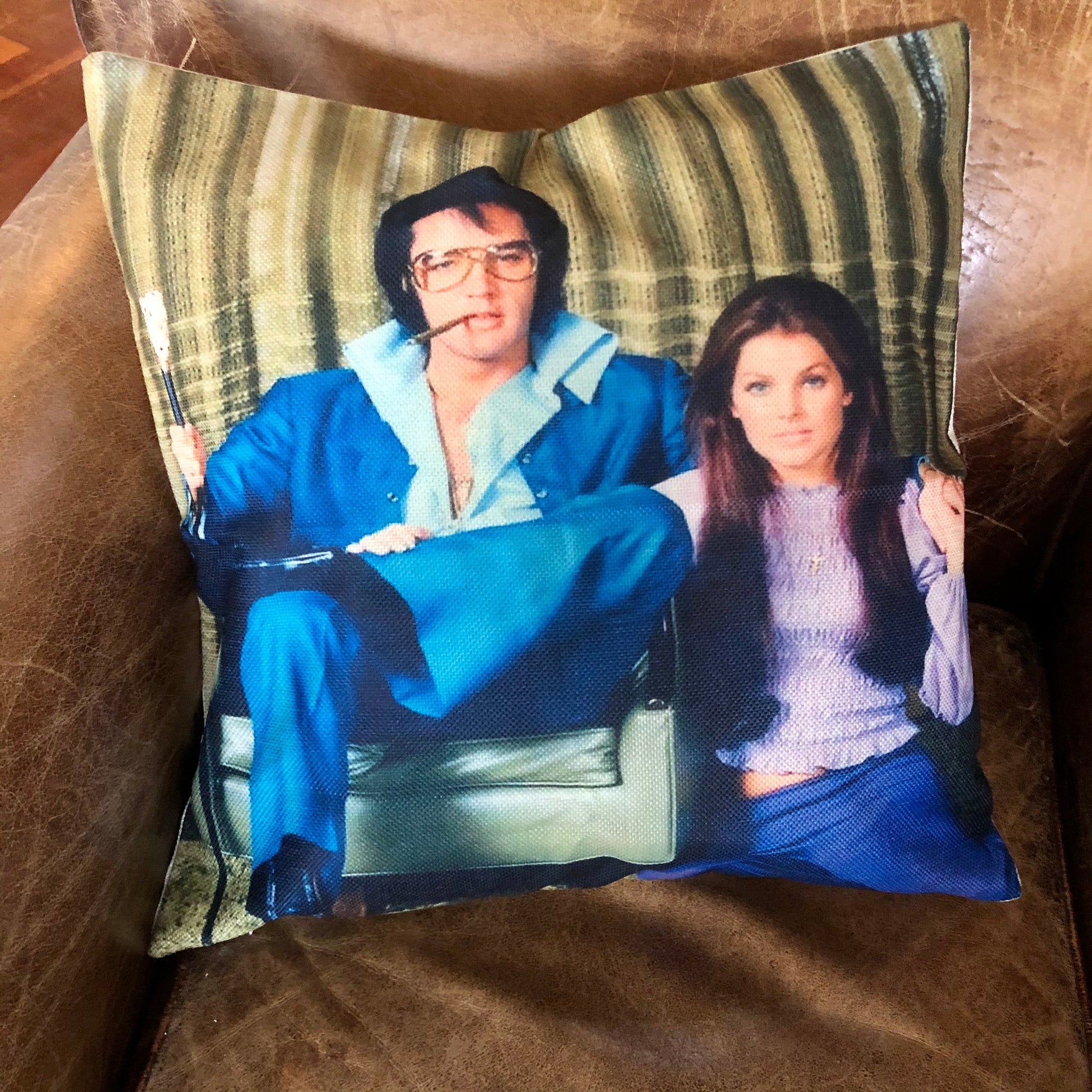 Purchase The king Elvis & Priscilla music retro pillow cushion cover online now from Six things shop Australia.