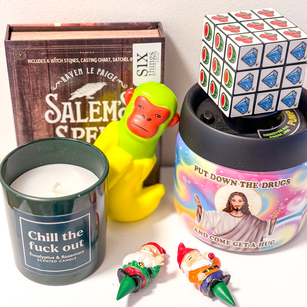 Are you giving a gift but don't know what to buy? Do you want to treat yo'self? Our mystery boxes are a giant lucky dip package full of Six things goodness. Treat yo self, gift your wife / hubby, secret santa for work bud, present for your mum / dad, a unique gift for your friend, thank you gift for someone special. Six things shop gift boxes make the best presents.