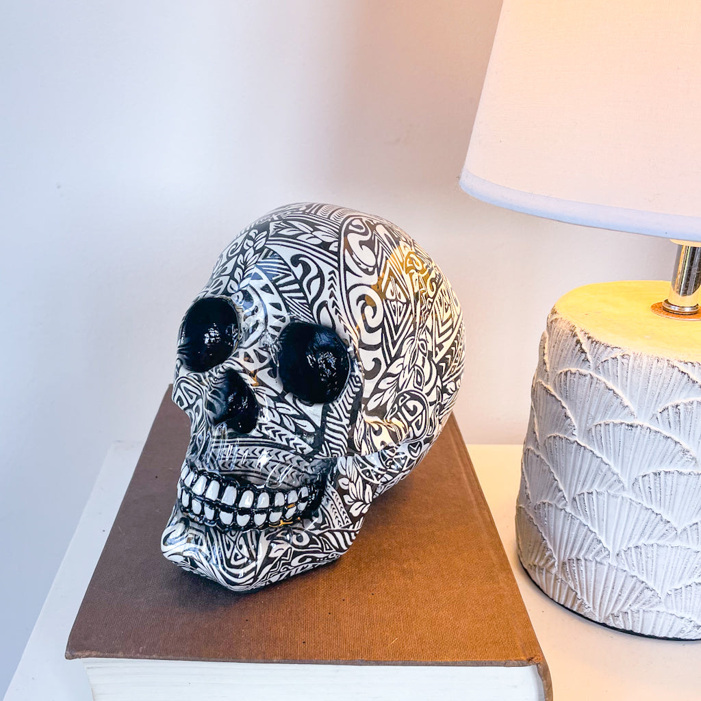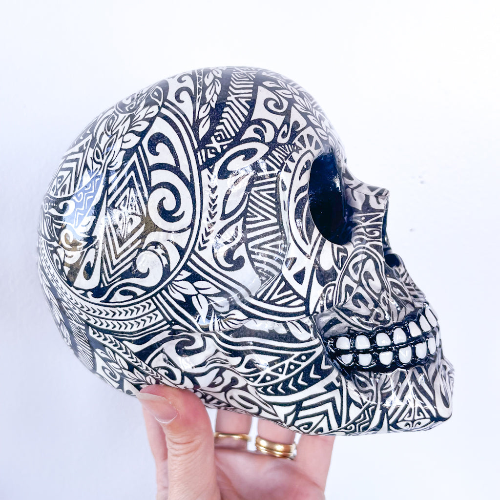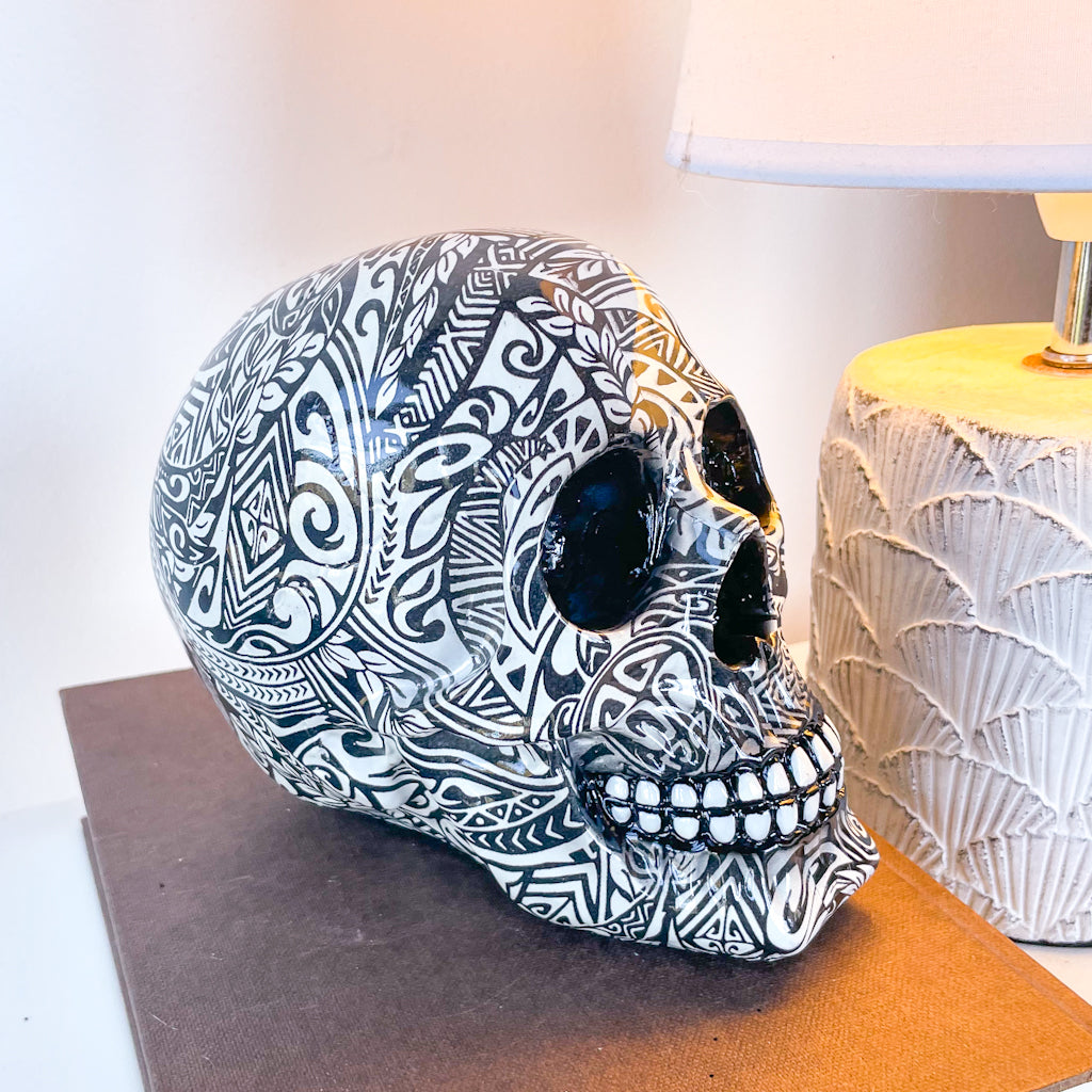 Purchase Tribal tattoo skull statue online now from Six things shop Australia.