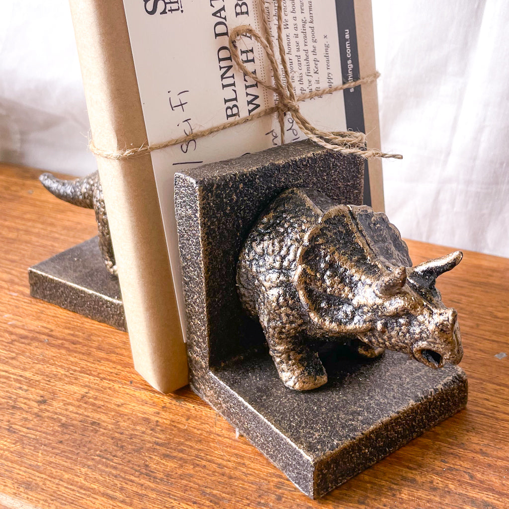 Purchase Triceratops dinosaur vintage statue painted metal bookends online now from Six things shop Australia.