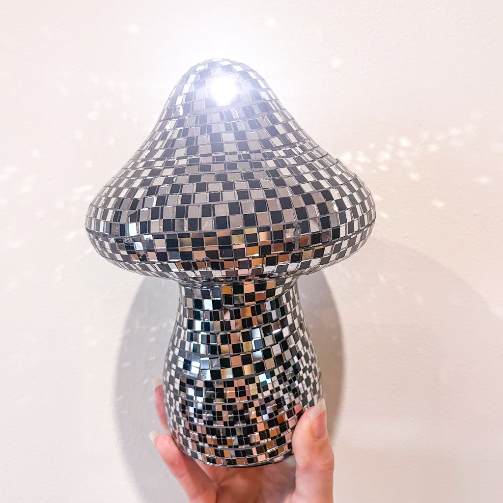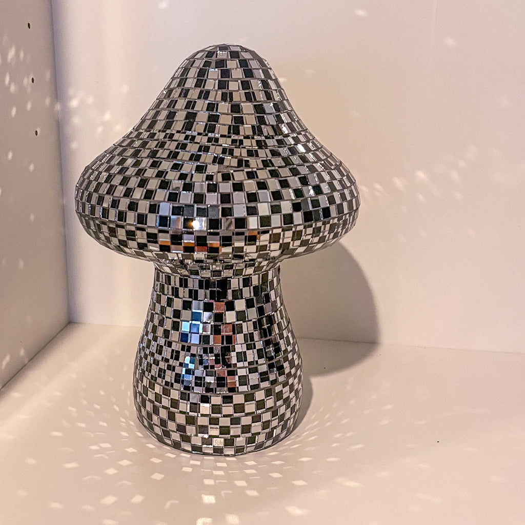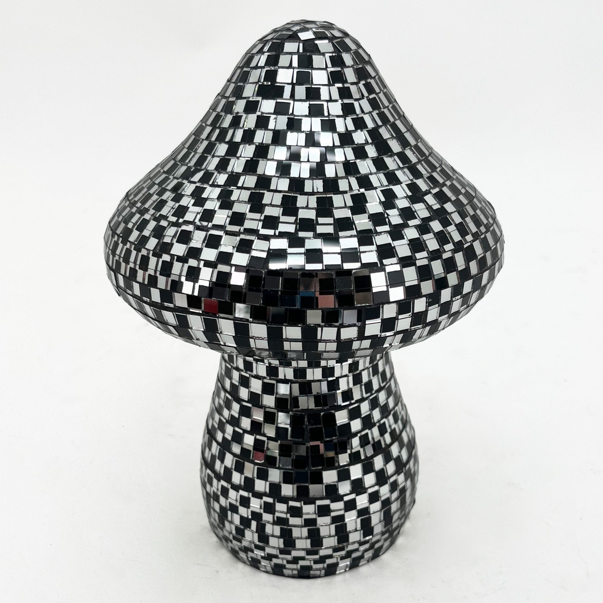 Disco mushroom! Perfect for the adding a little sparkle, this trippy mirror mosaic toadstool mushie is like a disco ball with its mirror ball exterior.