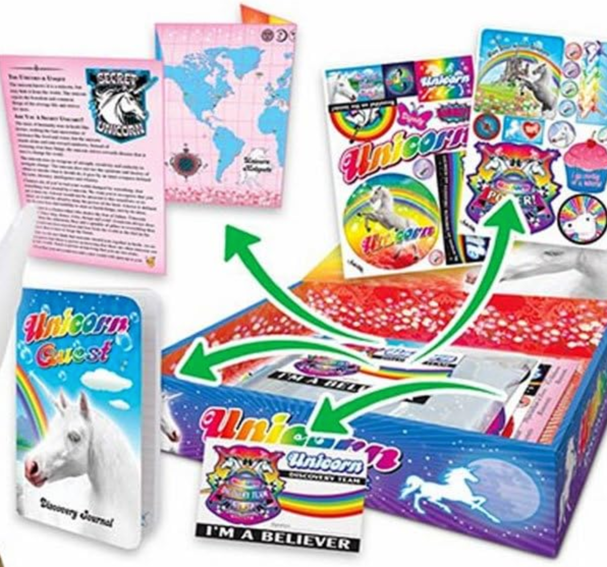 Includes: a detailed instruction booklet, an Inflatable Unicorn Horn, stickers, a journal and a membership card for you to carry around with you.