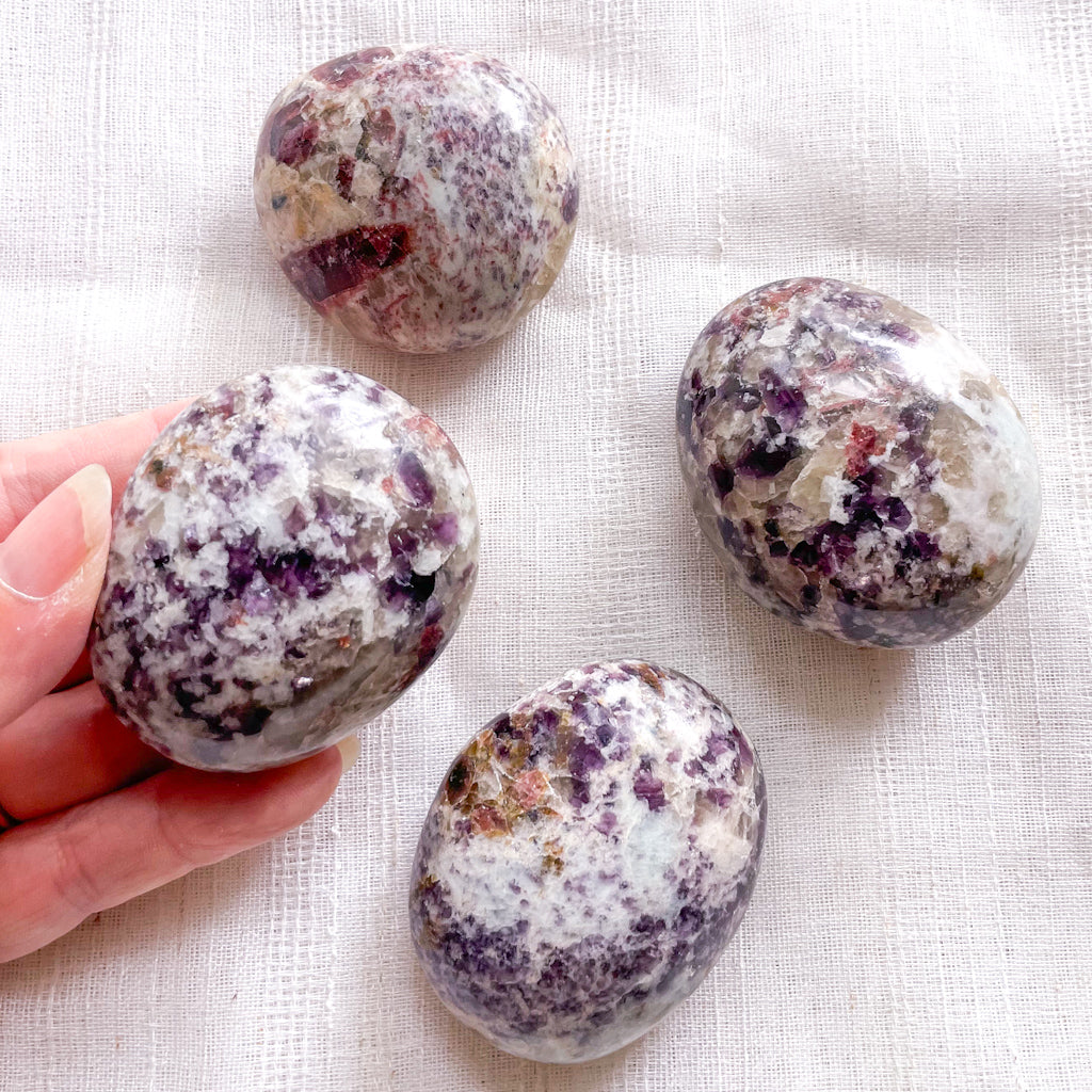- Lepidolite – Calming stone with natural Lithium inclusions that helps with anxiety, insomnia, fear, or polarized emotions