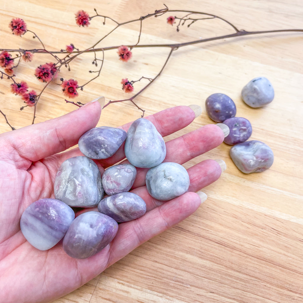 - Lepidolite – Calming stone with natural Lithium inclusions that helps with anxiety, insomnia, fear, or polarized emotions