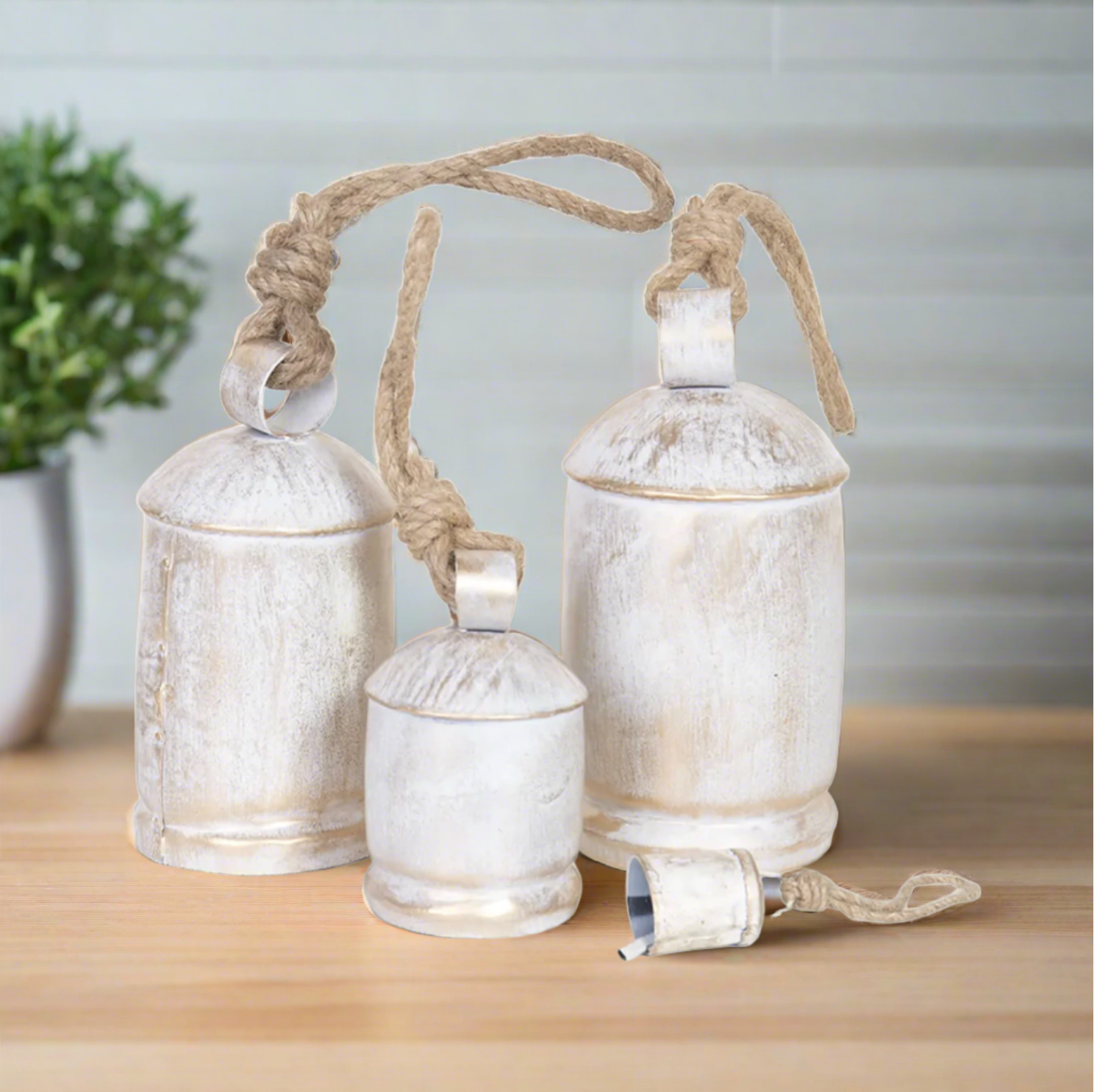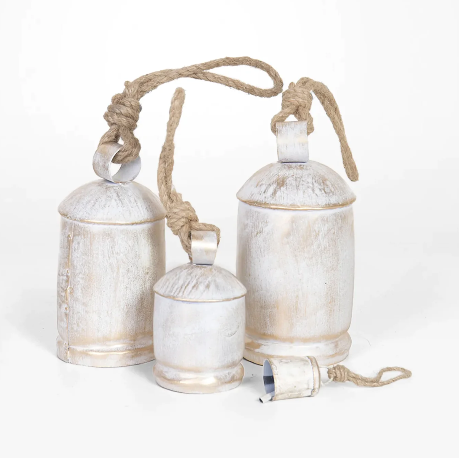 Bring positive energy into your home with our handmade rustic antique white gold bells!