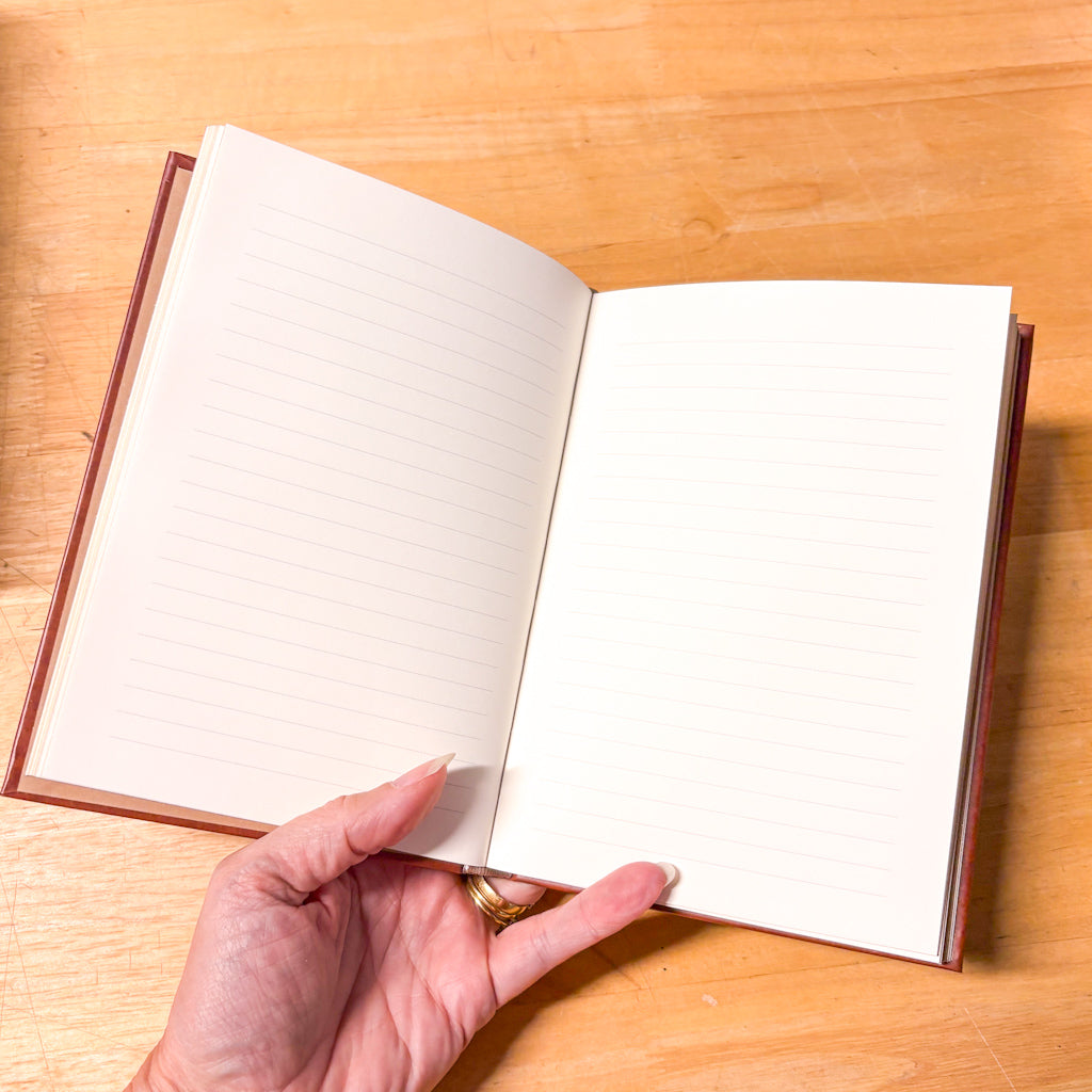 - An added touch: The journal's page edges are gilded in gold foil.
