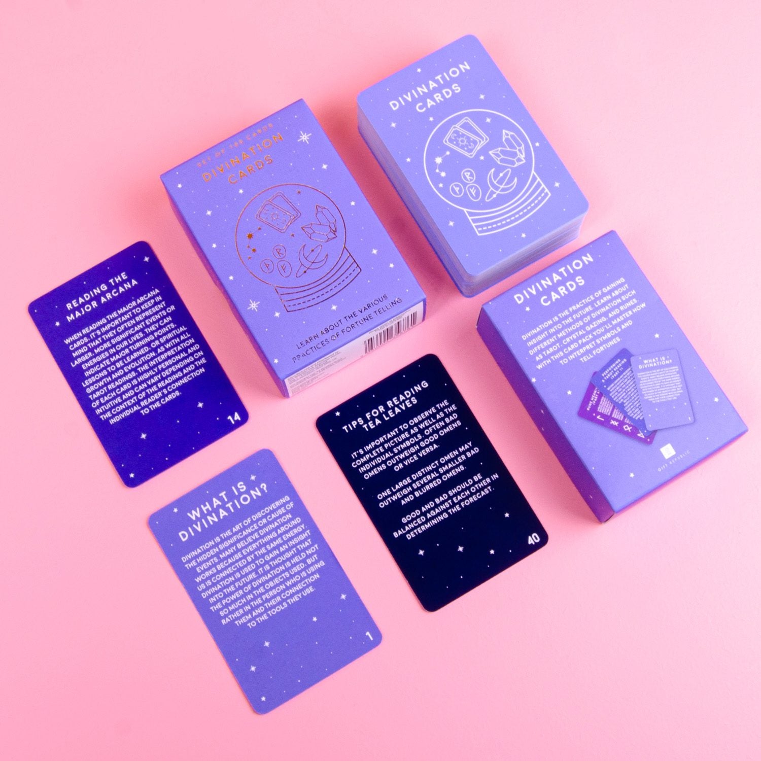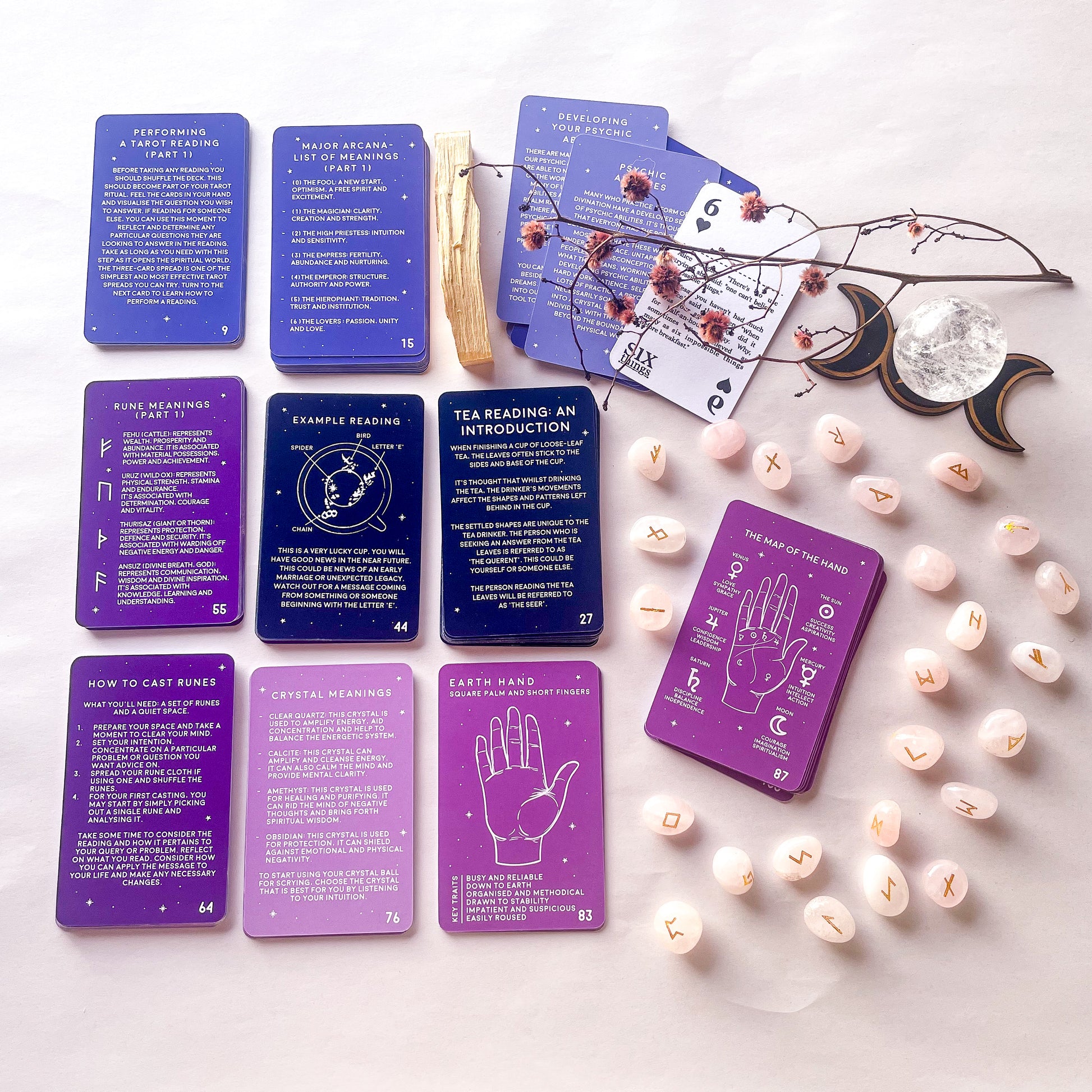 All the information you need to guide you on the road towards enlightenment - these cards include how to perform a tarot reading, how to cast runes, how to crystal gaze, how to read tea leaves, how to perform a palm reading, and more.