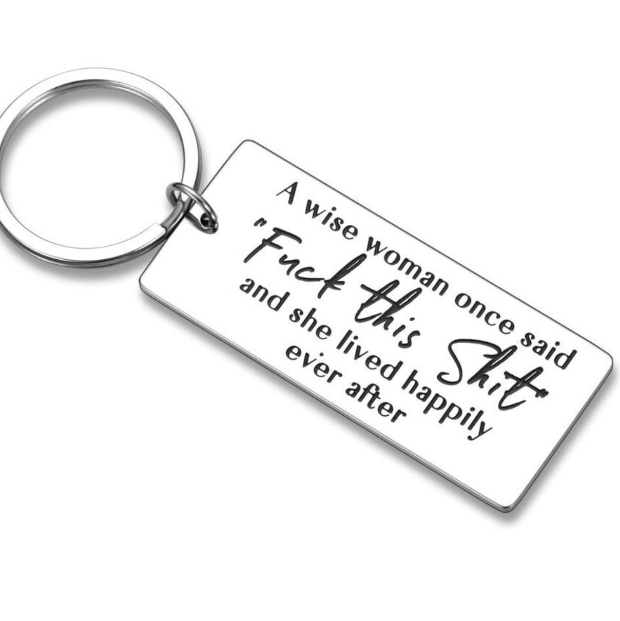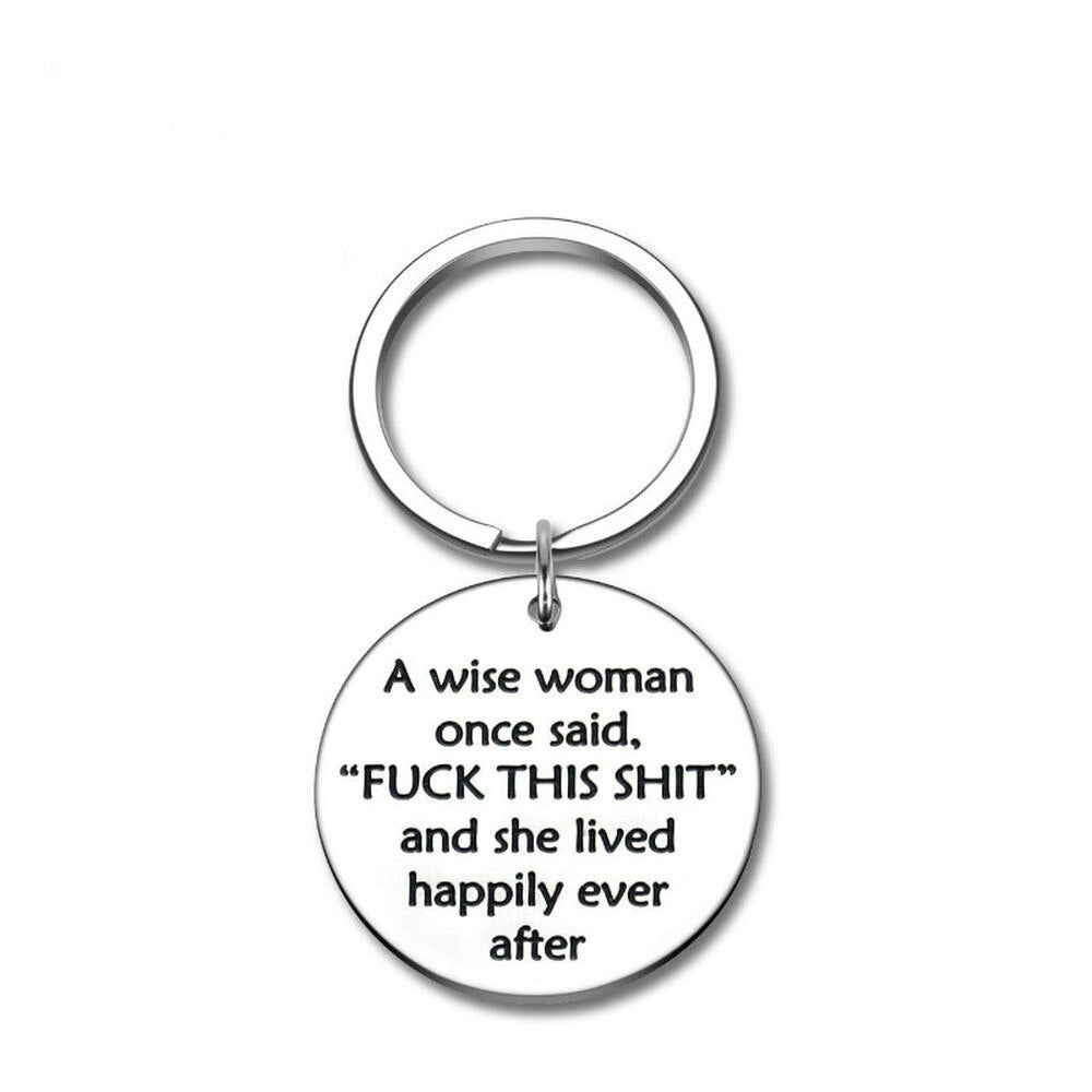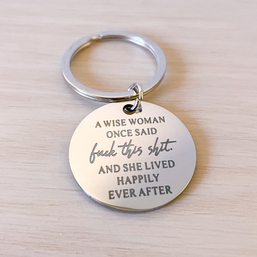 Keyring that reads - A wise woman once said fuck this shit and she lived happily ever after.