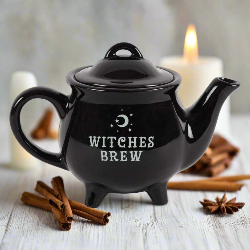 What better place to brew your fave tea! This tea pot is perfect for what ever witchy potion you're currently brewing. This very witchy cauldron teapot is perfect for your herbal teas!