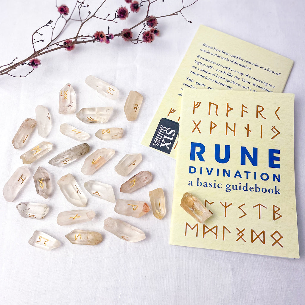 Purchase Witches clear quartz crystal fortune telling runes set online now from Six things shop Australia.