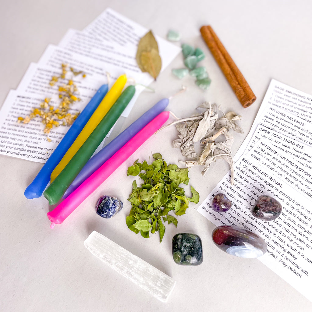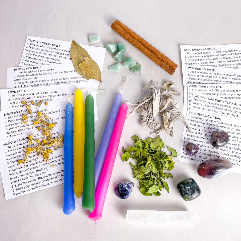Witches spells, rituals & crystals kit - protection, love, lucky gift box