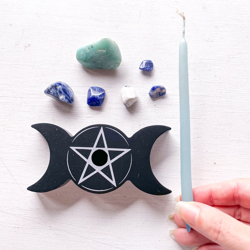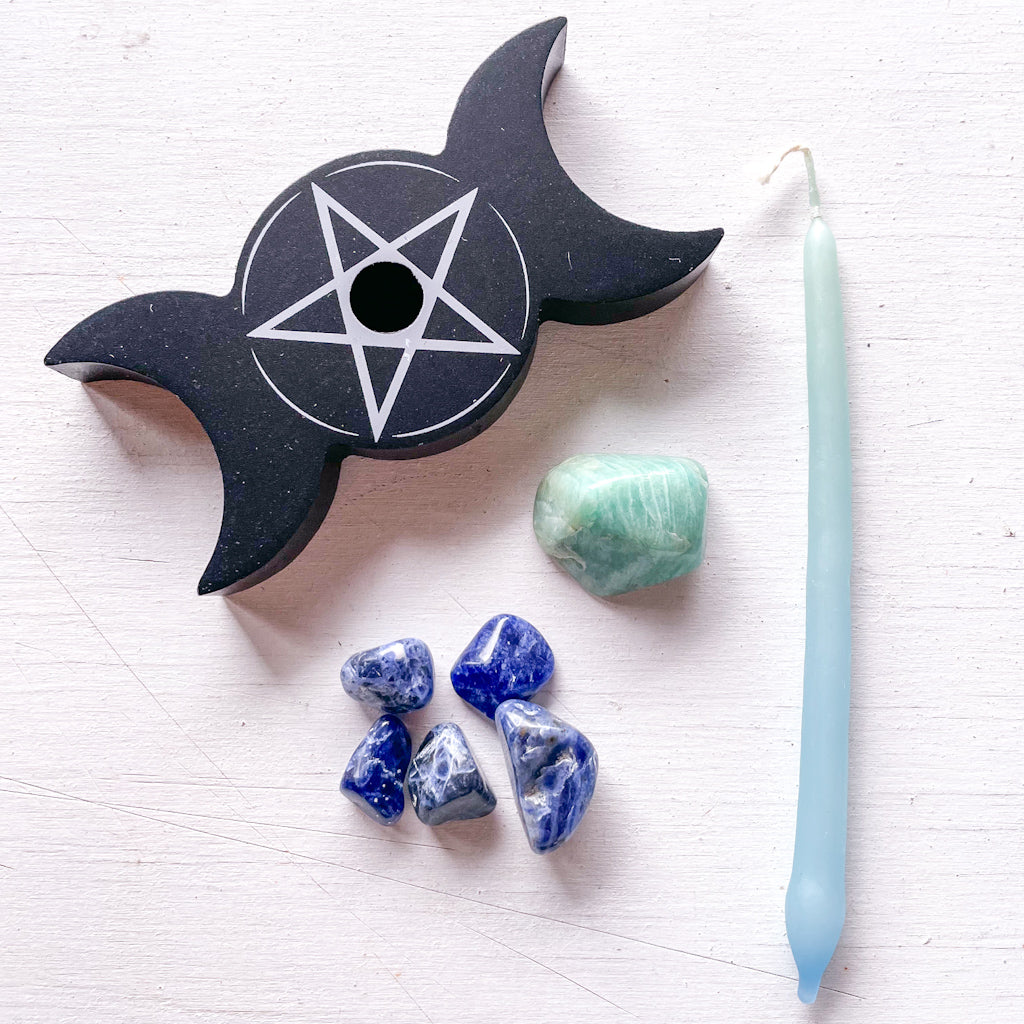 Witchy spell candle & crystal pack - blue - chilled vibes