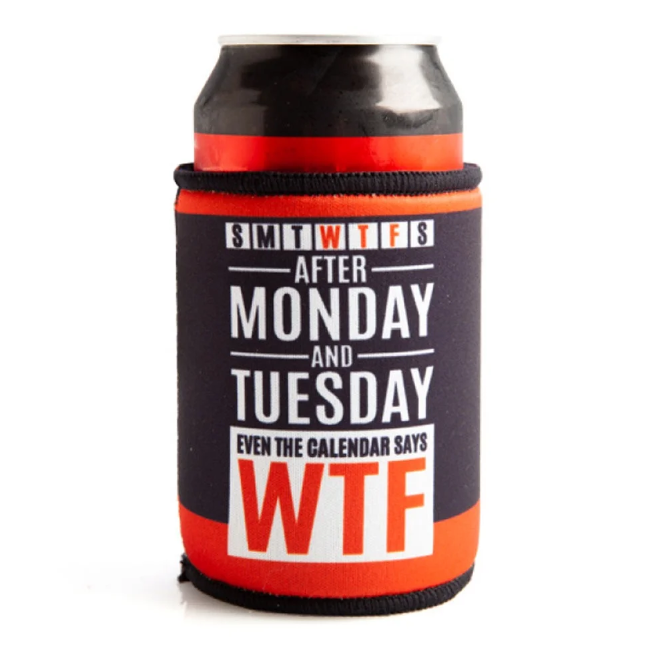 Keep your beer cold with this stubby holder great office kriskringle or man gift. After Monday and Tuesday, even the calendar says WTF.